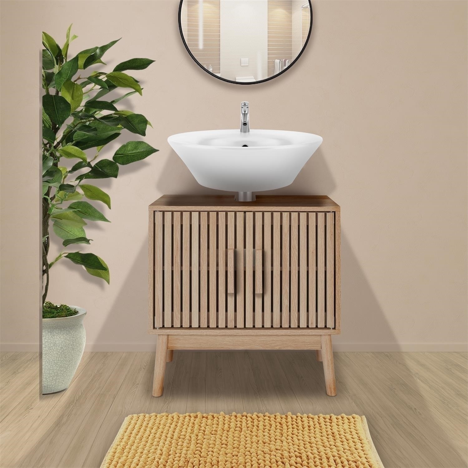 Szafka pod umywalkę Klaus to świetny wybór do każdej łazienki. Zapewnia dodatkowe miejsce do przechowywania, jednocześnie dodając wnętrzu ciepła i elegancji dzięki naturalnemu wykończeniu.