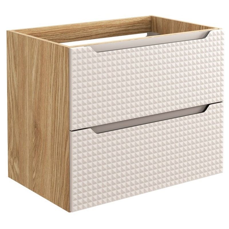Szafka pod umywalkę 70 cm z 2 szufladami to funkcjonalny i elegancki mebel, który pozwala utrzymać porządek w łazience. Szuflady zapewniają wygodny dostęp do przechowywanych przedmiotów, a ich cicha i płynna praca zwiększa komfort codziennego użytkowania. Prosty, nowoczesny design świetnie komponuje się z różnymi aranżacjami wnętrz. Wykonana z materiałów odpornych na wilgoć i uszkodzenia, gwarantuje trwałość przez długi czas. To praktyczne i estetyczne rozwiązanie, które łączy funkcjonalność z atrakcyjnym wyglądem.
