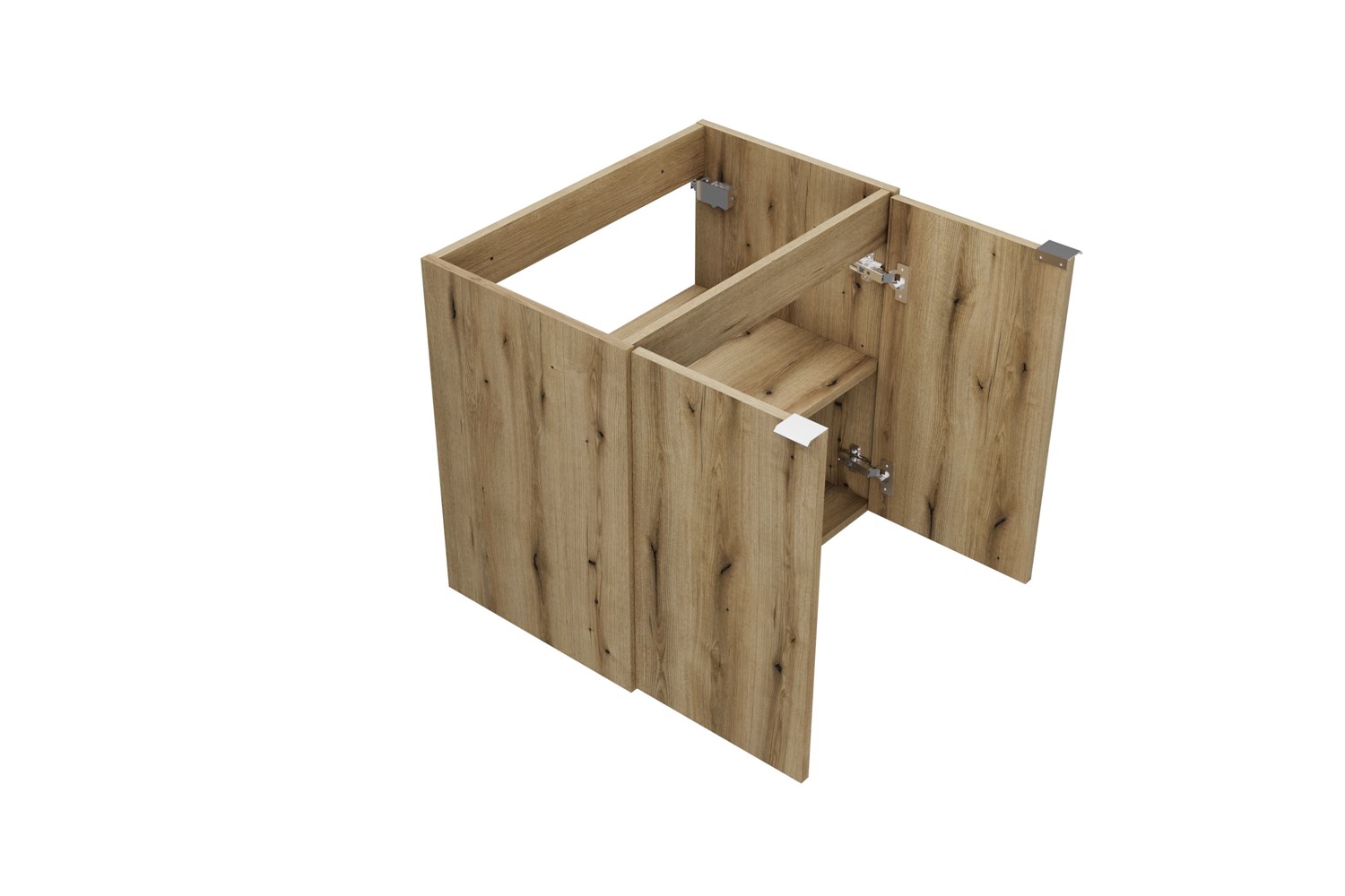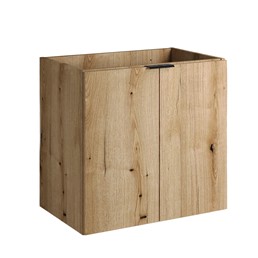 Szafka pod umywalkę NOVA wyróżnia się prostymi formami oraz eleganckim wykończeniem. Gładkie fronty, pozbawione dodatkowych ryflowań, podkreślają nowoczesny charakter mebla, a wykończenie w naturalnym odcieniu drewna Dąb Coast Evoke dodaje wnętrzu ciepła i przytulności. Wykonana z wysokiej jakości materiałów, szafka zapewnia trwałość i odporność na wilgoć, co jest kluczowe w łazienkowym środowisku. Solidne płyty laminowane oraz staranne wykończenie gwarantują długowieczność i estetyczny wygląd przez wiele lat. Szafka pod umywalkę NOVA oferuje przestronne półki, idealne do przechowywania kosmetyków, ręczników oraz innych niezbędnych akcesoriów łazienkowych. Ergonomiczny układ wnętrza umożliwia wygodne przechowywanie, pomagając utrzymać porządek i organizację w łazience.