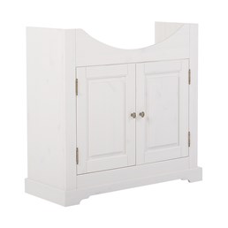 Szafka łazienkowa z kolekcji Romantic utrzymana jest w klasycznym stylu, a jej styl można łączyć ze stylem prowansalskim. Korpus i front szafki są białe, drzwi uzupełniają metalowe uchwyty. Szafka podumywalkowa Romantique to samodzielny mebel wyposażony w mebel. Za drzwiami ukryta jest prawdziwa półka, która dzieli wnętrze na dwie części. Taki podział pozwala maksymalnie wykorzystać przestrzeń do przechowywania niezbędnych drobiazgów, kosmetyków pielęgnacyjnych czy środków czystości. Szafka w łazience jest w całości wykonana z naturalnego drewna. Metalowy uchwyt. Wszystko to gwarantuje wysoką jakość produktu, który posłuży Ci przez długie lata.