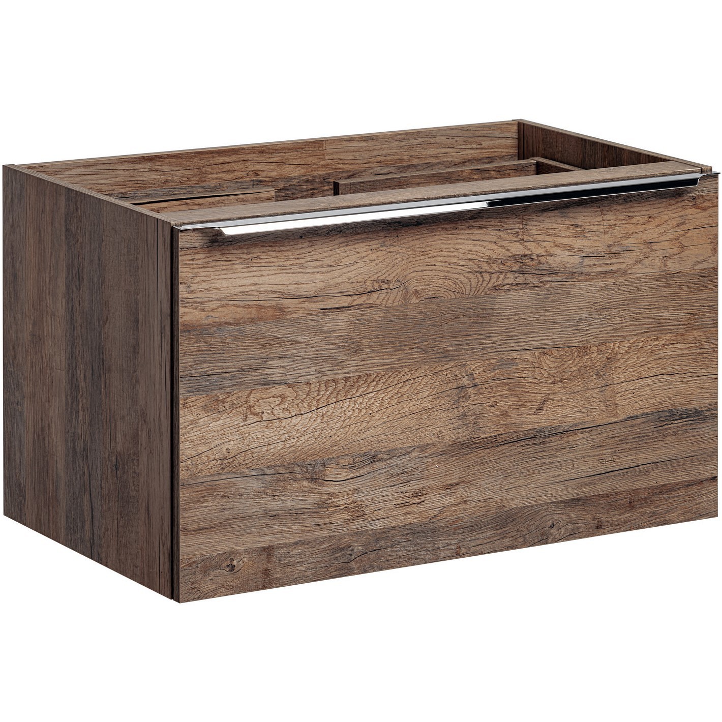 Szafka pod umywalkę SANTA FE DĄB o szerokości 80 cm to zaprojektowana wisząca szafka łazienkowa pod umywalkę nablatową z dwiema praktycznymi szufladami (zewnętrzną i wewnętrzną) na kosmetyki i akcesoria. Zestaw zawiera wewnętrzne rozmieszczenie pudełek. Rama i front szafki wykonane są z płyty laminowanej santa fe vintage w unikalnym kolorze dębu. W szufladach zastosowano przyciski sterujące z możliwością cichego domykania, dzięki czemu szafki domykają się wolniej i ciszej, bez obawy o przypadkowe uderzenie w szufladę. Zewnętrzne pudełko posiada również dodatkowy uchwyt, który jest zarówno ozdobą mebla, jak i praktyczną funkcją podczas użytkowania szafki. Zlewozmywak można zainstalować na stole roboczym z dębowym blatem w stylu vintage santa fe. Blat nie posiada otworu na syfon.