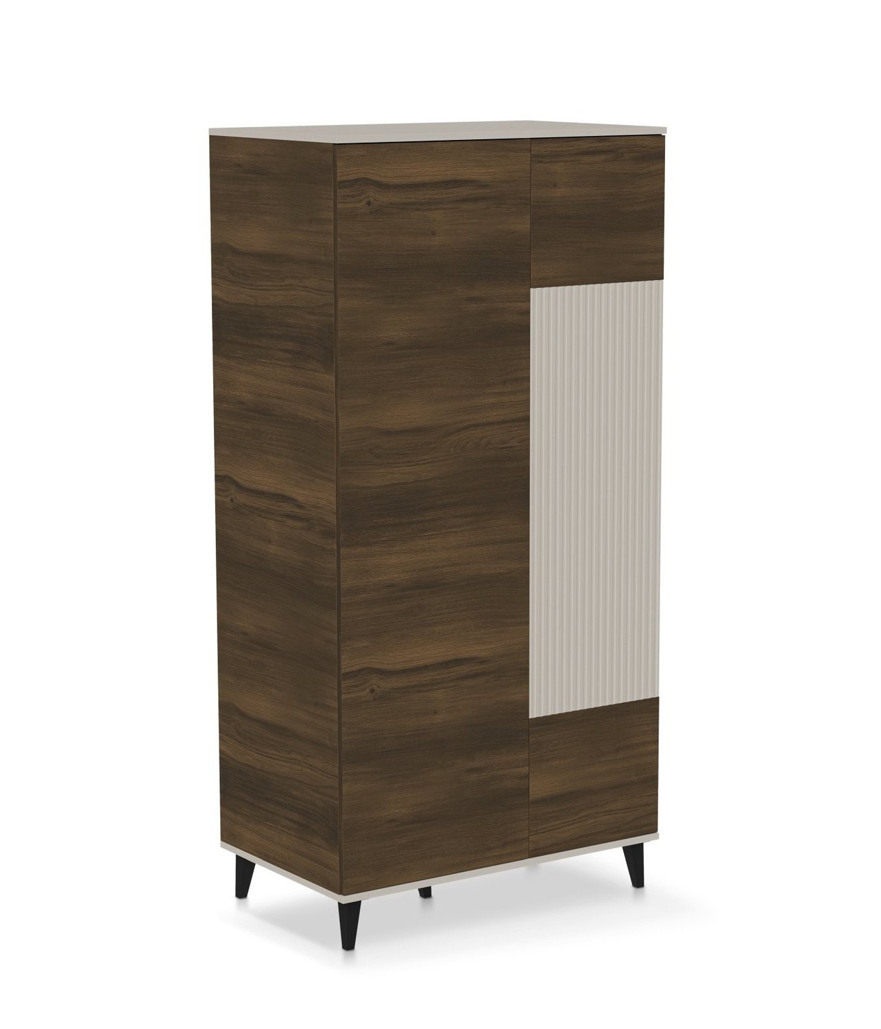 Prezentowana szafka to nowoczesny mebel o minimalistycznym designie, doskonale komponujący się z różnymi aranżacjami wnętrz. Wykonana z wysokiej jakości materiałów, takich jak płyta meblowa okleinowana, MDF okleinowany oraz polipropylen, zapewnia trwałość i estetyczny wygląd. Jej kolorystyka w odcieniach dębu wotan i czerni dodaje elegancji oraz ciepła pomieszczeniu. Szafa wyposażona jest w dwie uchylne drzwi, za którymi kryje się przestronna przestrzeń do przechowywania odzieży i innych przedmiotów. Solidna konstrukcja oraz staranność wykonania gwarantują długotrwałe użytkowanie. Szafa RANDOM S-1 jest częścią kolekcji mebli RANDOM, co pozwala na stworzenie spójnej aranżacji wnętrza.