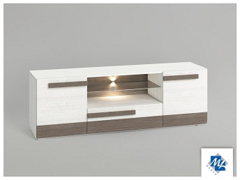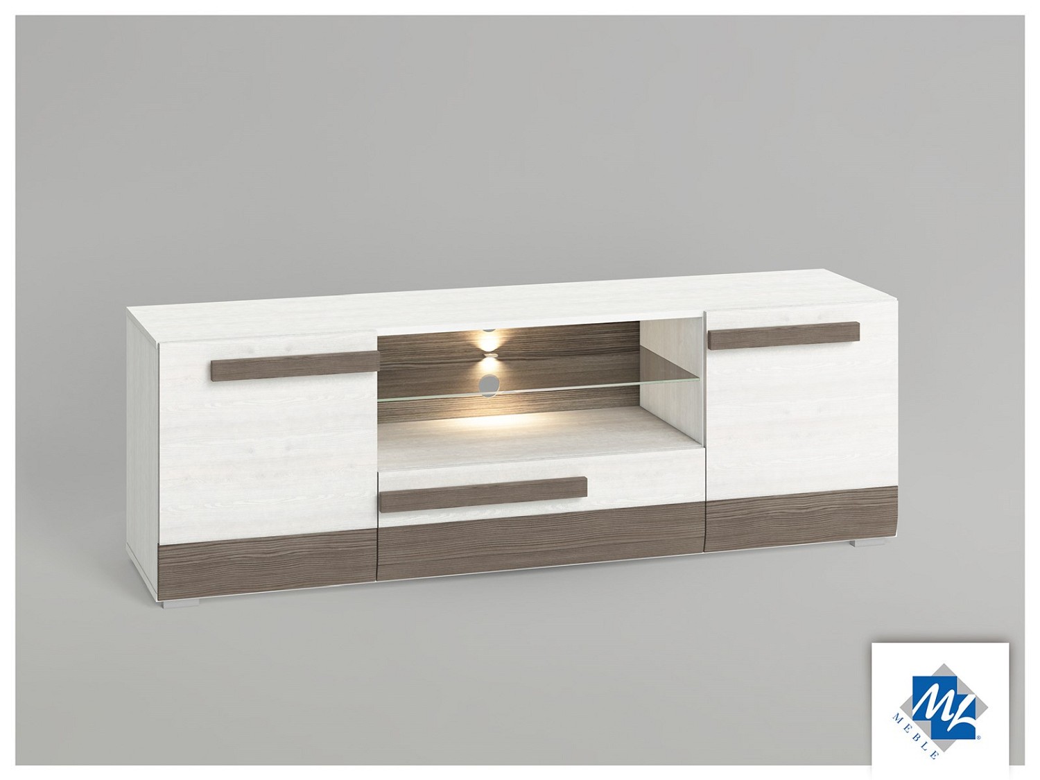 Warto wyrażać swoją indywidualność. Nawet przy wyborze mebli. Dla tych, którzy cenią sobie nowoczesność i niebanalne połączenia kolorystyczne stworzono szafkę RTV BLANCO 09. To dwie boczne szafki, komoda oraz dwie wnęki przedzielone szkłem, przy którym możliwy jest montaż oświetlenia LED. Szafkę wykonano z płyty laminowanej, która cechuje się wyjątkową wytrzymałością oraz odpornością na wilgoć czy zarysowania. Elementy dekoracyjne to natomiast drewniany MDF w kolorze new grey. To propozycja, która bez problemu pomieści nawet bardzo rozbudowany sprzęt RTV.