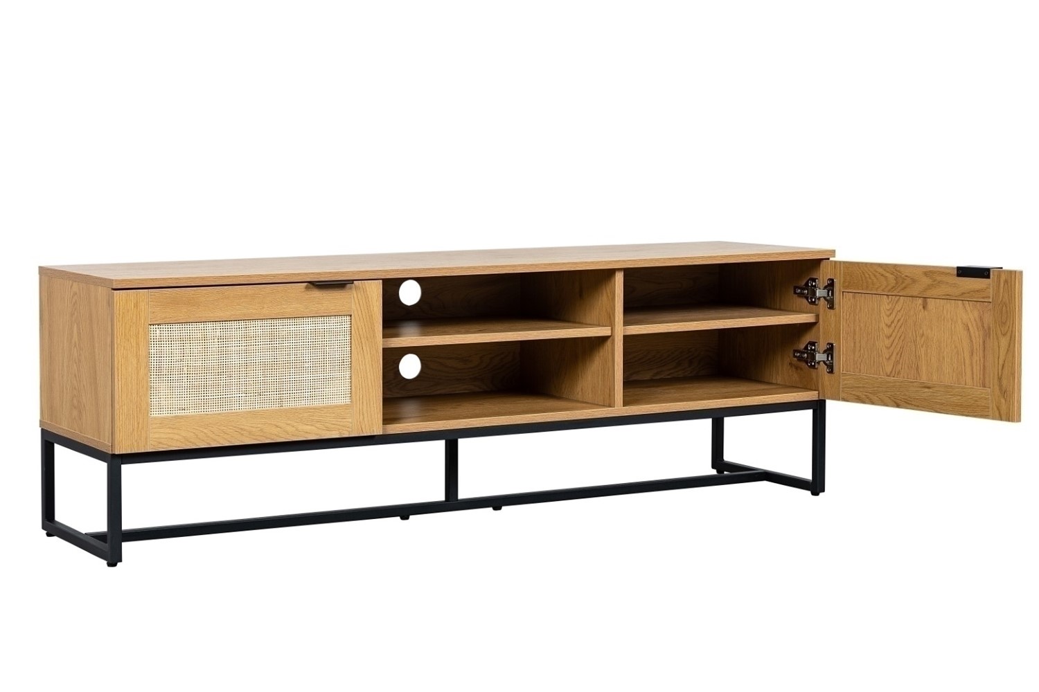 Szafka RTV Capri to elegancki mebel, który łączy w sobie funkcjonalność z nowoczesnym stylem. Dzięki przemyślanemu układowi półek i solidnej konstrukcji, idealnie nadaje się do przechowywania sprzętu multimedialnego, książek czy dekoracji. Świetnie sprawdzi się w salonie, pokoju dziennym lub biurze.