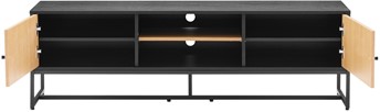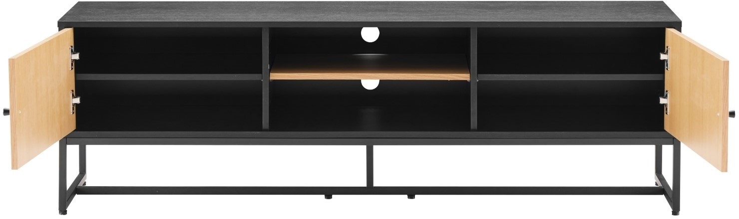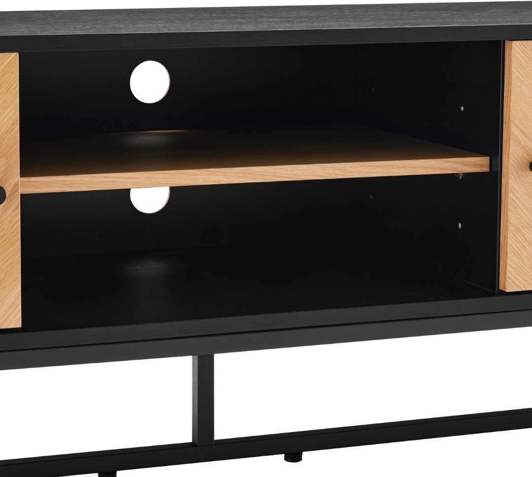 Szafka RTV Clar w kolorze dębu to stylowy i funkcjonalny mebel, który doskonale wpasuje się w nowoczesne wnętrza. Wykonana z wysokiej jakości płyty laminowanej. Eleganckie wykończenie połączone z nowoczesnymi elementami sprawia, że całość ma wyjątkowy charakter. Szafka posiada dwie przestronne szafki oraz półki, które pomieszczą najpotrzebniejsze rzeczy.Solidne nogi zapewniają stabilność. Szafka Clar to praktyczny element wyposażenia.