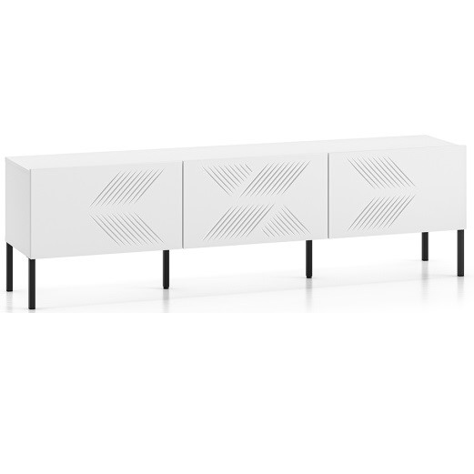 Szafka RTV Clearing 04 w białym alpejskim odcieniu z czarnymi nogami to połączenie funkcjonalności i elegancji. Wykonana z płyty laminowanej z obrzeżem ABS, wyróżnia się odpornością na zarysowania i nowoczesnym wyglądem. Czarna konstrukcja nóg dodaje lekkości, a całość sprawdzi się w każdej aranżacji salonu.