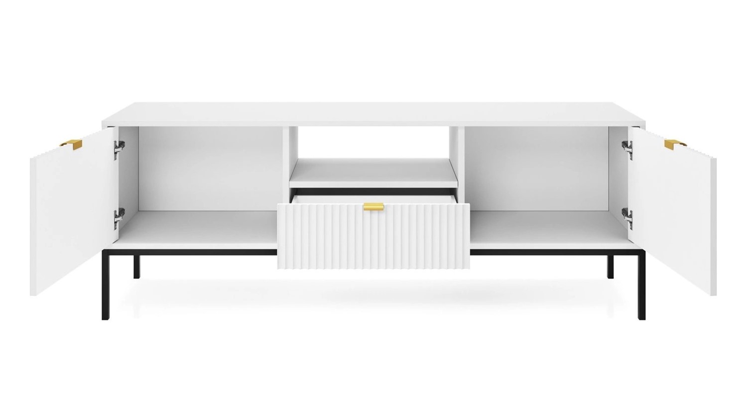 Szafka RTV to funkcjonalny i stylowy mebel przeznaczony do przechowywania sprzętu multimedialnego. Idealnie sprawdzi się w salonie jako podstawa pod telewizor oraz akcesoria elektroniczne. Pojemne półki i schowki ułatwiają organizację dekoderów, konsol, pilotów i kabli. Solidna konstrukcja zapewnia stabilność i trwałość podczas codziennego użytkowania. Przemyślany układ przestrzeni pozwala zachować porządek w strefie rozrywki. Uniwersalny design sprawia, że szafka pasuje do nowoczesnych i klasycznych aranżacji wnętrz. Otwory na przewody zwiększają komfort użytkowania i estetykę ustawienia sprzętu. To praktyczne połączenie funkcjonalności i estetyki w każdym salonie.