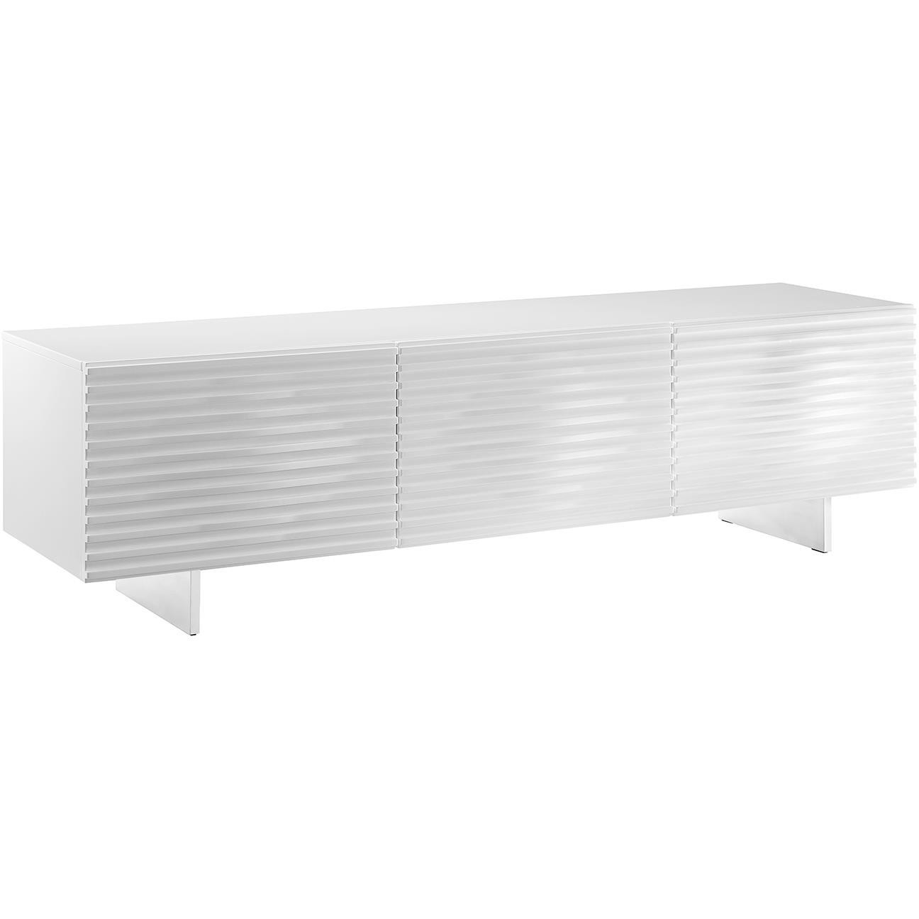 Szafka RTV w stylu modern classic w białym kolorze zapiera dech w piersiach swoją elegancją i funkcjonalnością. Jej wyjątkowym elementem są parametryczne fronty, które nadają całej konstrukcji niepowtarzalny charakter, łącząc w sobie nowoczesność z klasycznym wdziękiem. Nogi wykonane ze stali nierdzewnej dodają produktowi lekkości i elegancji, równocześnie zapewniając stabilność i trwałość. Wyróżnia się nie tylko swoim wyglądem, ale również solidnym wykonaniem, co sprawia, że jest doskonałym wyborem dla tych, którzy cenią sobie wysoką jakość i niebanalny design.