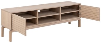 Szafka RTV Linley w dębie bielonym to wyjątkowy mebel, który łączy nowoczesny design z klasycznym stylem. Jej elegancka, jasna kolorystyka wprowadza do wnętrza lekkość i świeżość, idealnie pasując do różnorodnych aranżacji.Szafka oferuje przestronne półki, które pomieszczą sprzęt audio-wideo oraz dekoracje, a zamykane szafki pozwalają na ukrycie drobiazgów, zapewniając estetyczny wygląd.Lamelowe fronty nadają unikalny wygląd, który wyróżnia się spośród innych mebli.Szafka posiada dwie otwarte półki, które doskonale sprawdzą się na sprzęt RTV oraz dekoracje, zamykane natomiast ukryją drobiazgi i kable.