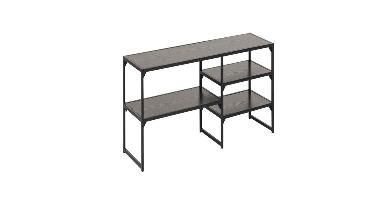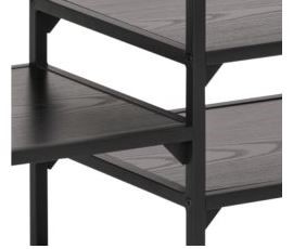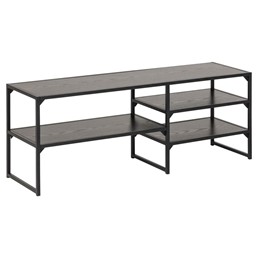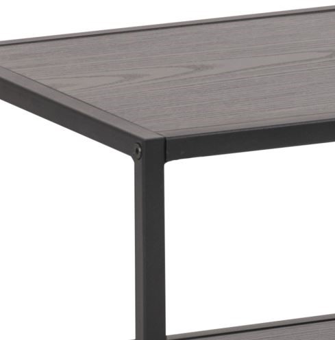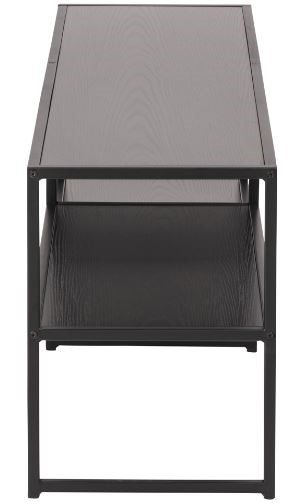 Szafka RTV Seaford w kolorze czarnym to stylowy i funkcjonalny mebel, który doskonale wpasuje się w nowoczesne wnętrza. Wykonana z wysokiej jakości płyty wiórowej pokrytej folią melaminową, jest odporna na zarysowania i łatwa w utrzymaniu czystości. Solidna stalowa podstawa zapewnia stabilność i dodaje industrialnego charakteru, co sprawia, że szafka jest nie tylko praktyczna, ale i estetyczna. Otwarta konstrukcja stelaża nadaje lekkości, a minimalistyczny design sprawia, że mebel ten harmonijnie komponuje się z różnymi aranżacjami wnętrz.