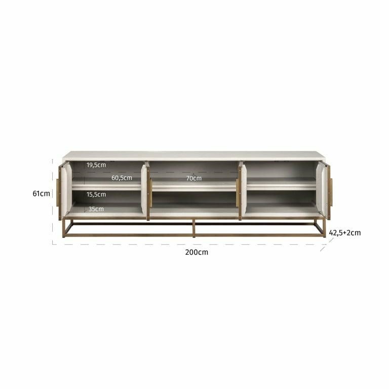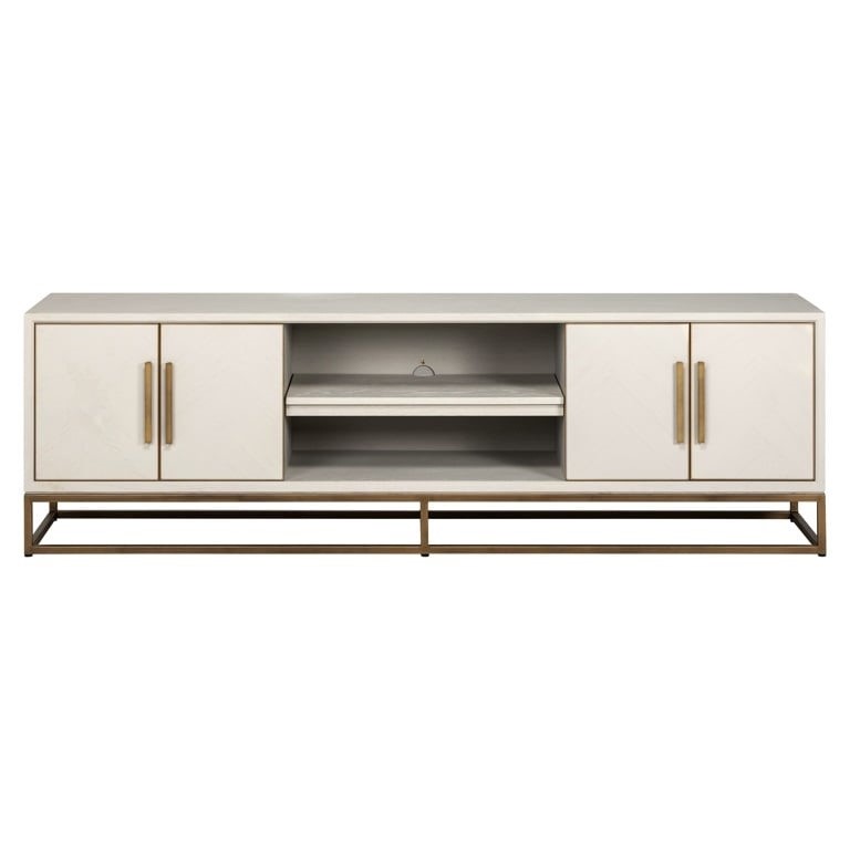 Kolekcja Whitebone charakteryzuje się modnym wykończeniem z forniru dębowego Verona Grey i metalowymi, mosiężnymi detalami.