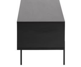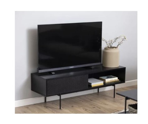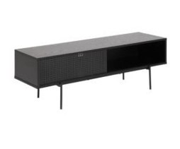 Szafka TV Angus w kolorze czarnym to idealne rozwiązanie dla miłośników nowoczesnych wnętrz z industrialnym akcentem. Jej prosta, minimalistyczna forma oraz elegancka, matowa powierzchnia sprawiają, że doskonale wpasuje się w każdą aranżację salonu. Szafka posiada przesuwne drzwiczki, które umożliwiają łatwy dostęp do przechowywanych akcesoriów, takich jak kable, dekodery czy konsole. Dzięki solidnej konstrukcji i wysokiej jakości materiałom, szafka Angus jest nie tylko estetyczna, ale także trwała i funkcjonalna. Jej wymiary pozwalają na umieszczenie na niej telewizora o dużej przekątnej, a dodatkowe półki zapewniają miejsce na sprzęt audio-wideo.