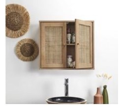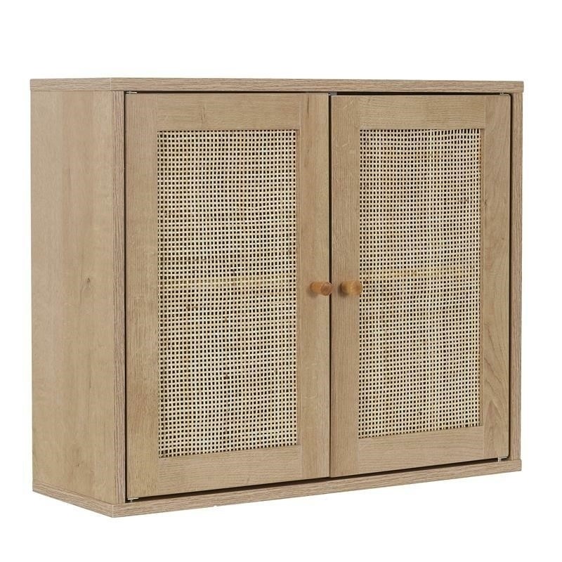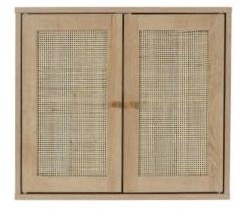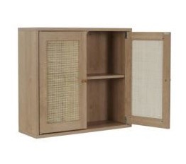 Szafka wisząca Bali naturalna to elegancki i funkcjonalny element wyposażenia łazienki. Wykonana z wysokiej jakości płyty MDF, pokrytej okleiną imitującą dąb, dodaje wnętrzu naturalnego i orientalnego uroku. Fronty szafki ozdobione są rattanowymi wstawkami, co nadaje jej unikalny charakter. Szafka posiada dwie szerokie półki, które zapewniają dużo miejsca na przechowywanie kosmetyków i innych niezbędnych akcesoriów łazienkowych. Dzięki możliwości zawieszenia na ścianie, idealnie sprawdzi się w mniejszych łazienkach, pozwalając zaoszczędzić cenną przestrzeń pod umywalką.