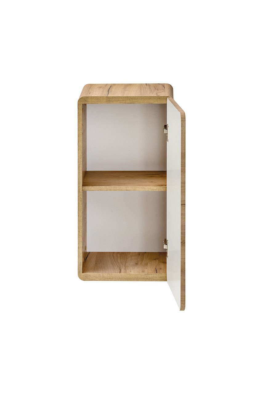 Aruba to szafka łazienkowa o wysokości 68 cm i szerokości 35 cm. Wewnątrz praktyczna półka dzieli przestrzeń na dwie części. Dzięki temu podziałowi zyskujesz dużą przestrzeń do przechowywania kosmetyków lub niezbędnych przedmiotów do codziennej pielęgnacji. Korpus szafki wykonany jest z wysokiej jakości sklejki, a fronty z płyty MDF. Całość ozdobiona jest ręcznie malowanym żółtym dębem, dzięki czemu mebel pasuje zarówno do nowoczesnych, jak i klasycznych wnętrz.