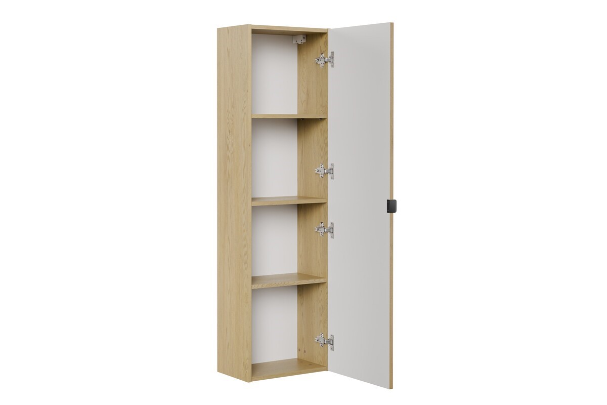 Szafka wysoka to praktyczne rozwiązanie do każdej łazienki, które pozwala optymalnie wykorzystać przestrzeń w pionie. Dzięki swojej kompaktowej, a jednocześnie pojemnej konstrukcji sprawdzi się zarówno w mniejszych, jak i większych pomieszczeniach. Za pełnym frontem kryją się funkcjonalne półki, idealne do przechowywania kosmetyków, ręczników czy akcesoriów łazienkowych. Prosta forma, neutralne wykończenie i uniwersalny styl sprawiają, że szafka łatwo dopasowuje się do różnych aranżacji – od klasycznych po nowoczesne. To solidny, estetyczny mebel, który łączy walory użytkowe z eleganckim wyglądem.