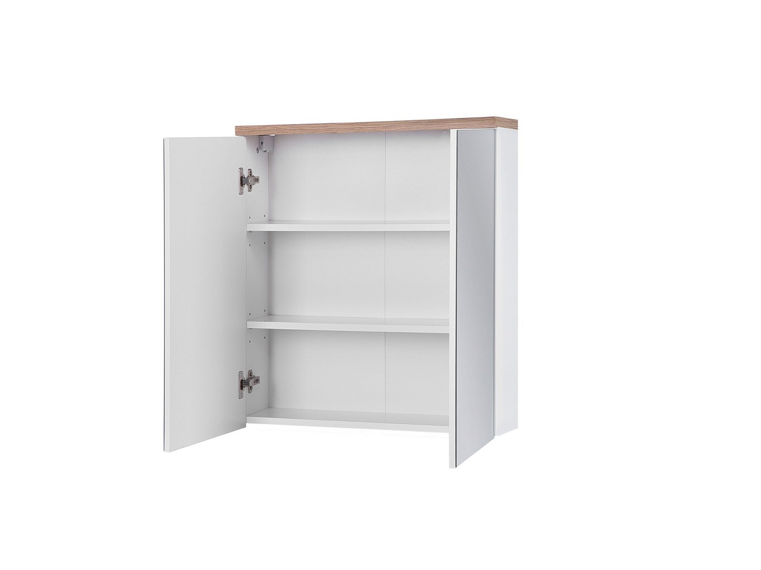 Meble łazienkowe z kolekcji Bali utrzymane są w stylu skandynawskim. Świadczy o tym szary blat oraz drewniane wstawki i nogi. W kolekcji znajdują się szafki stojące i wiszące w różnych rozmiarach – wszystko po to, by każdy mógł urządzić piękną łazienkę zgodnie ze swoimi potrzebami i możliwościami. Szafka łazienkowa wisząca o szerokości 80 cm posiada dwie półki, które dzielą wnętrze na trzy części. Zapewnia to dużo miejsca do przechowywania niezbędnych kosmetyków oraz drobnych przedmiotów do codziennej pielęgnacji. Mebel posiada system miękkiego domykania, dzięki czemu jest jeszcze bardziej praktyczny. Szafka łazienkowa ma matowy korpus z laminatu i jest w całości pokryta od frontu lustrem. Materiały te gwarantują trwałość, wytrzymałość i długowieczność.