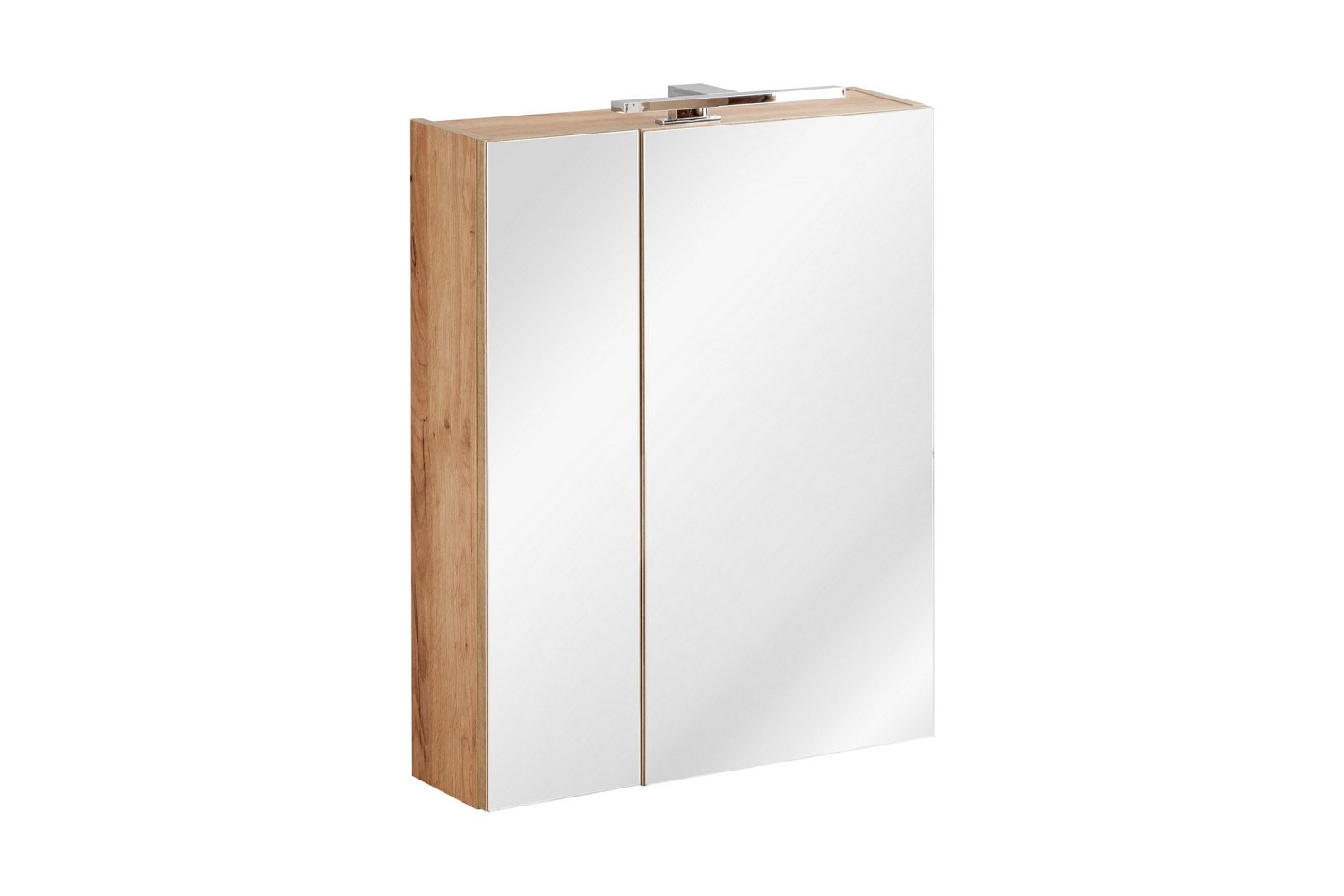Szafki łazienkowe z lustrami z kolekcji Capri reprezentują nowoczesny styl, choć kolor w odcieniu naturalnego drewna to także esencja stylu skandynawskiego. Szafka łazienkowa wisząca wyposażona jest w dwie półki, które dzielą przestrzeń szafki na trzy części. Daje to dużo miejsca do przechowywania kosmetyków i drobnych przedmiotów potrzebnych do codziennej pielęgnacji lub czyszczenia przedmiotów. Szafka posiada delikatny system otwierania i zamykania, co czyni ją jeszcze bardziej praktyczną. Szafka łazienkowa ma korpus z laminowanego panela, a front w całości pokryty jest lustrem.