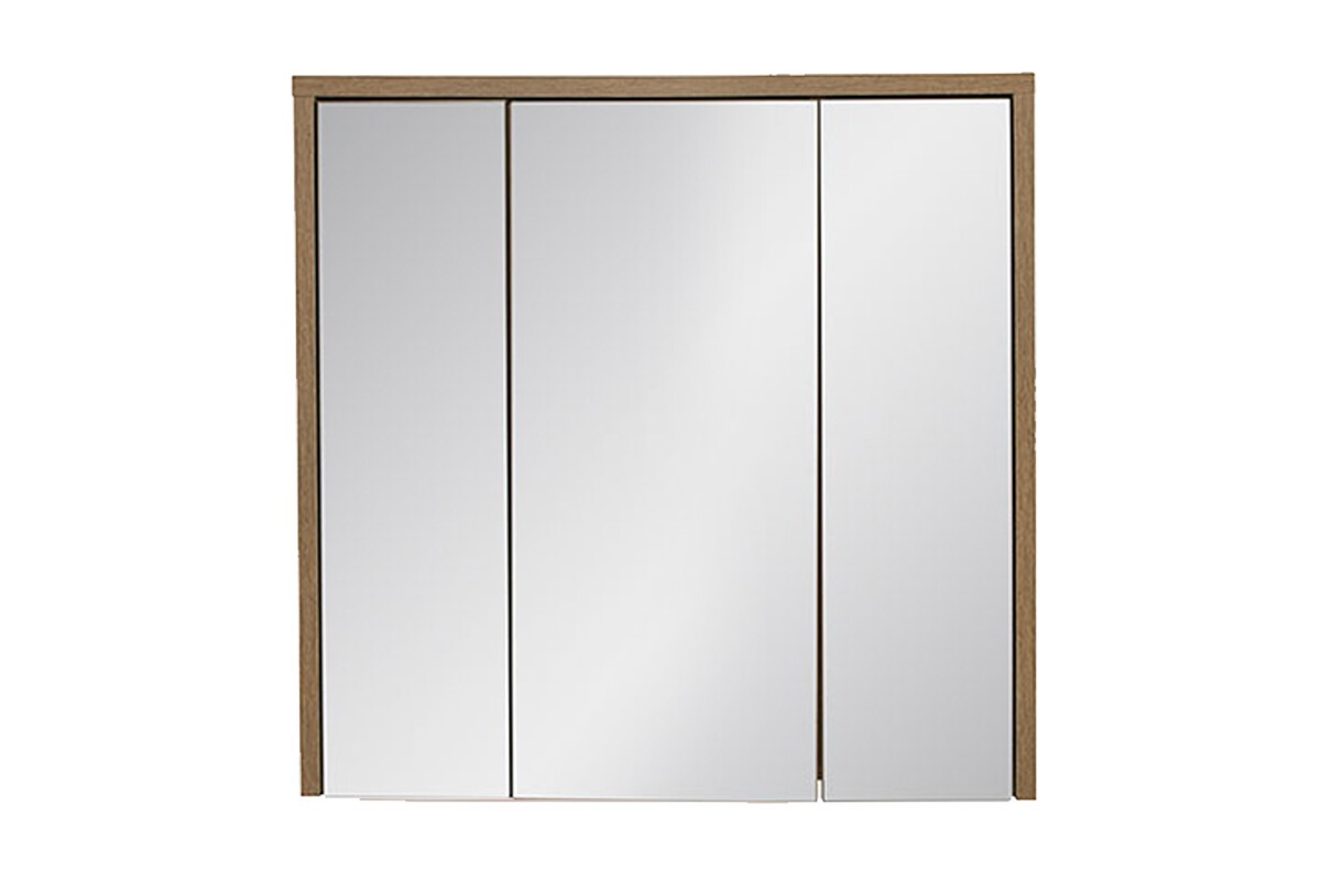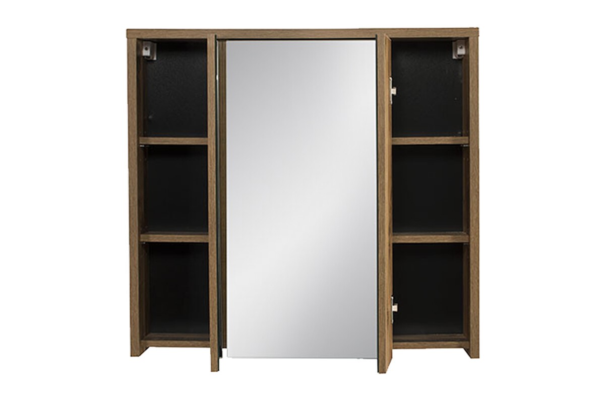 Szafka z lustrem Hampton Concrete o szerokości 80 cm to praktyczne rozwiązanie, które łączy miejsce do przechowywania z funkcją lustra. Idealna do łazienek ceniących nowoczesne formy i funkcjonalność. Trzy drzwi dają dużo miejsca na akcesoria.