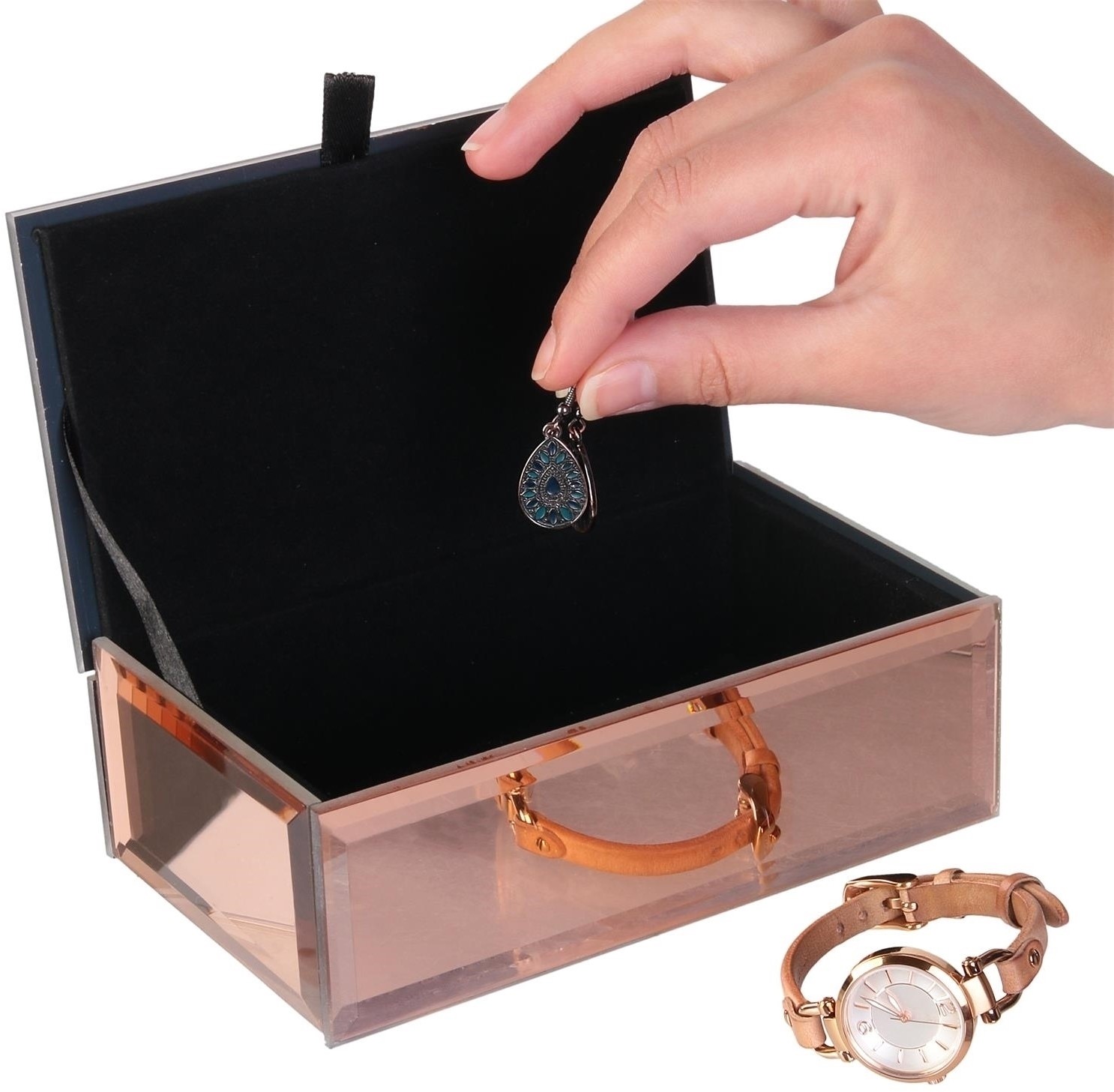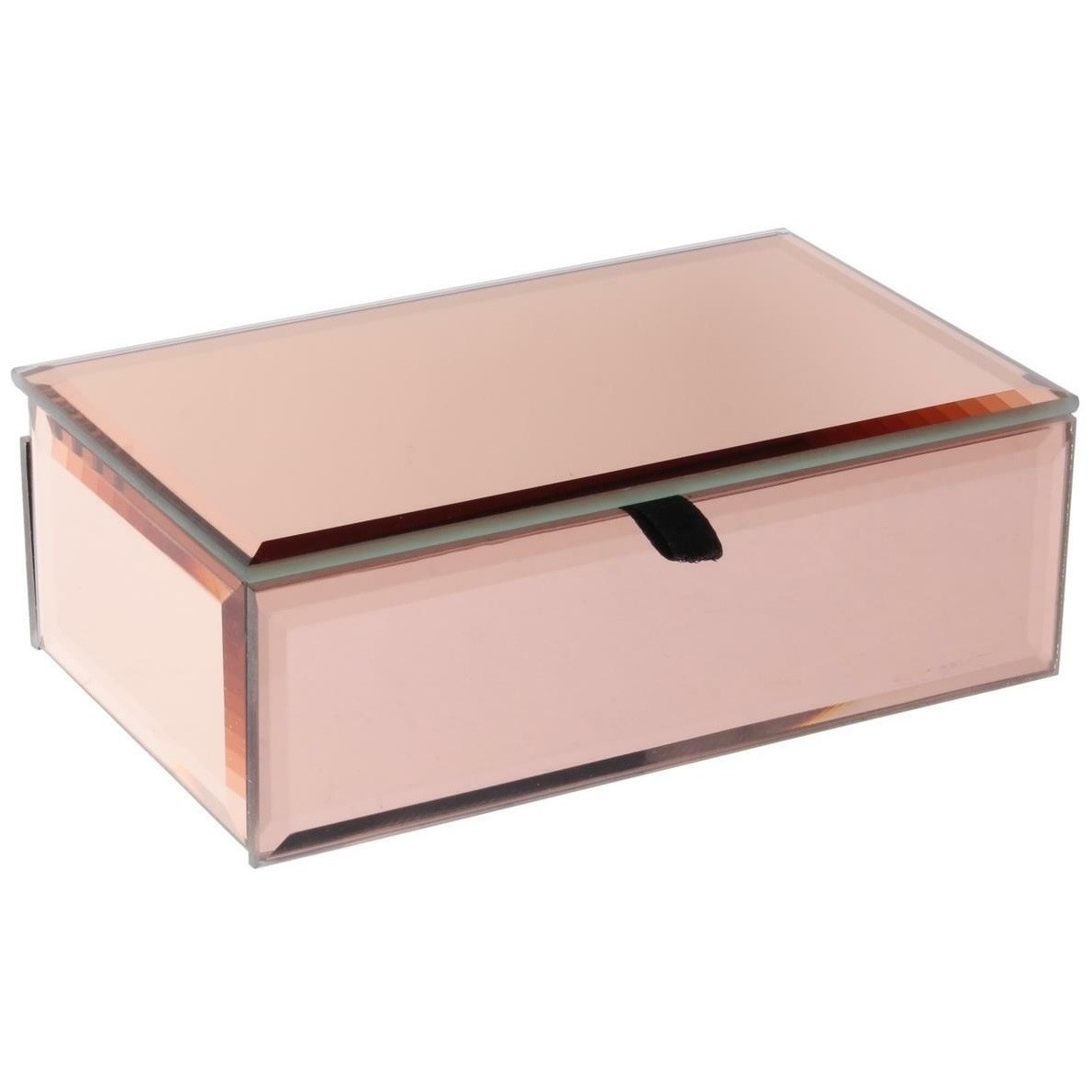 Szkatułka na biżuterię Golden Rose lustrzana to elegancki i stylowy dodatek, który zachwyca swoim wyglądem i funkcjonalnością.Ciepły odcień różowego złota, który doskonale wpisuje się w nowoczesne trendy i dodaje wnętrzu wyjątkowego blasku. Kompaktowa, idealna do postawienia na toaletce, biurku czy w szafie.Wnętrze wyłożone jest miękkim materiałem, który chroni biżuterię przed zarysowaniami i uszkodzeniami. To idealny wybór dla osób ceniących elegancję i funkcjonalność w przechowywaniu swoich skarbów.