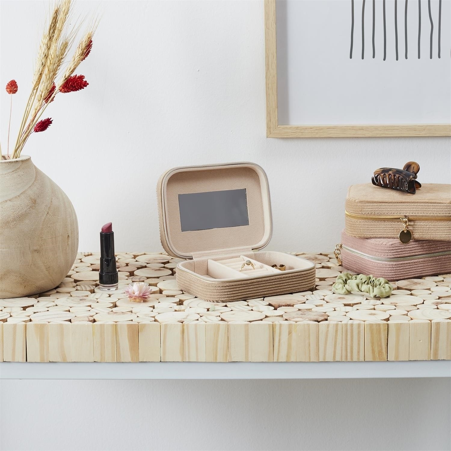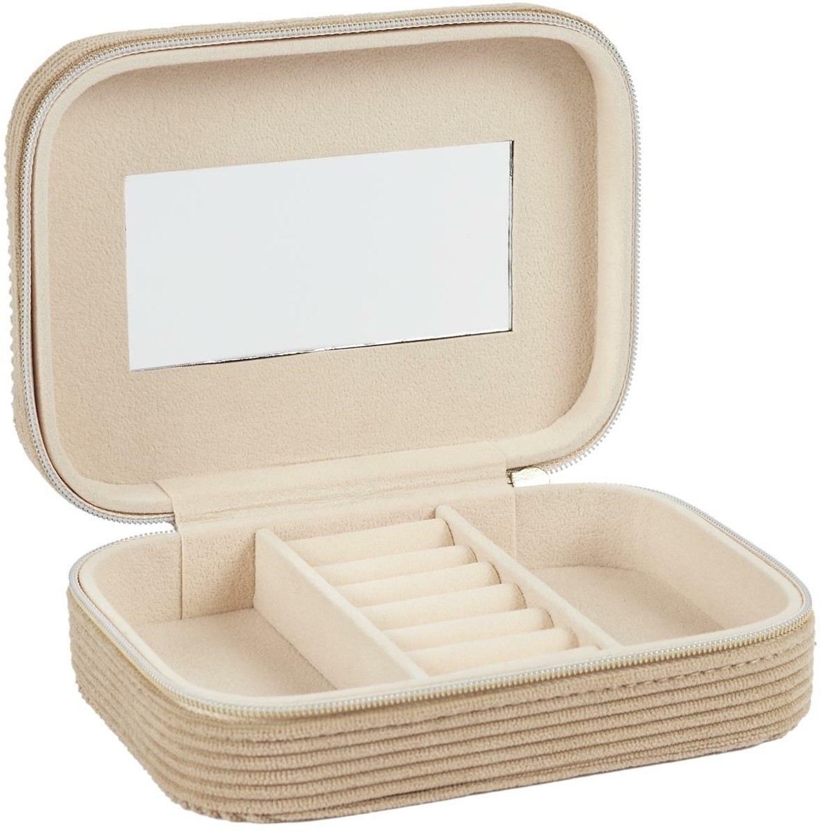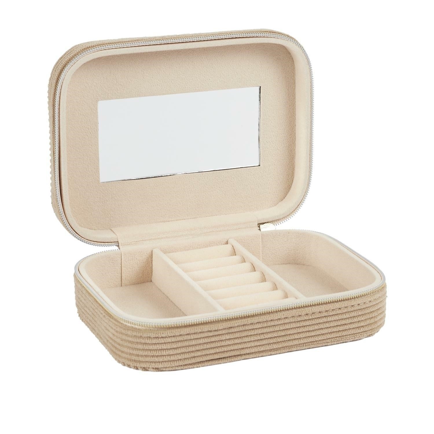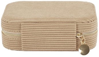 Szkatułka sztruksowa Velour w kolorze brązowym to elegancki i funkcjonalny organizer biżuterii. Wykonana z miękkiego sztruksu, zapewnia estetyczny wygląd.Dzięki różnym przegródkom i kieszonkom, można łatwo posegregować i przechowywać różne rodzaje biżuterii.Dzięki niej każdy drobiazg zyska swoje miejsce, a wnętrze nabierze wyjątkowego charakteru.Szkatułka po wewnętrznej stronie pokrywy ma zamontowane małe lusterko.