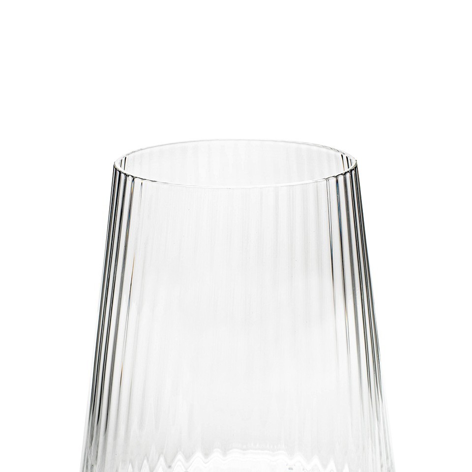 Szklanka RIFFLE to nie tylko pojemnik do napoju, ale także element wzornictwa, który może stać się ozdobą stołu. Jej nowatorski design przyciąga uwagę i wpisuje się w współczesne trendy estetyczne. Przezroczyste naczynie zostało wykonane w całości ze szkła. Szklanki nie można podgrzewać w mikrofali.