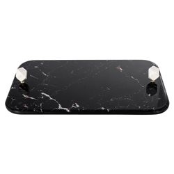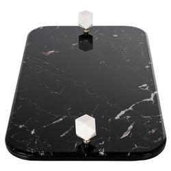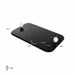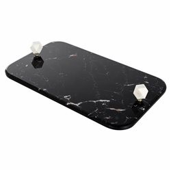 Taca Yaya to idealne połączenie elegancji i luksusowego designu. Wykonana z MDF i szkła, zdobiona czarnym kamiennym blatem o marmurowym wzorze, taca wprowadza do wnętrza subtelną elegancję. Ozdobne uchwyty w kształcie sześciokątnych kryształów nie tylko ułatwiają przenoszenie, ale również podkreślają jej wyjątkowy charakter. To stylowy element, który doskonale sprawdzi się w nowoczesnych, jak i klasycznych aranżacjach.