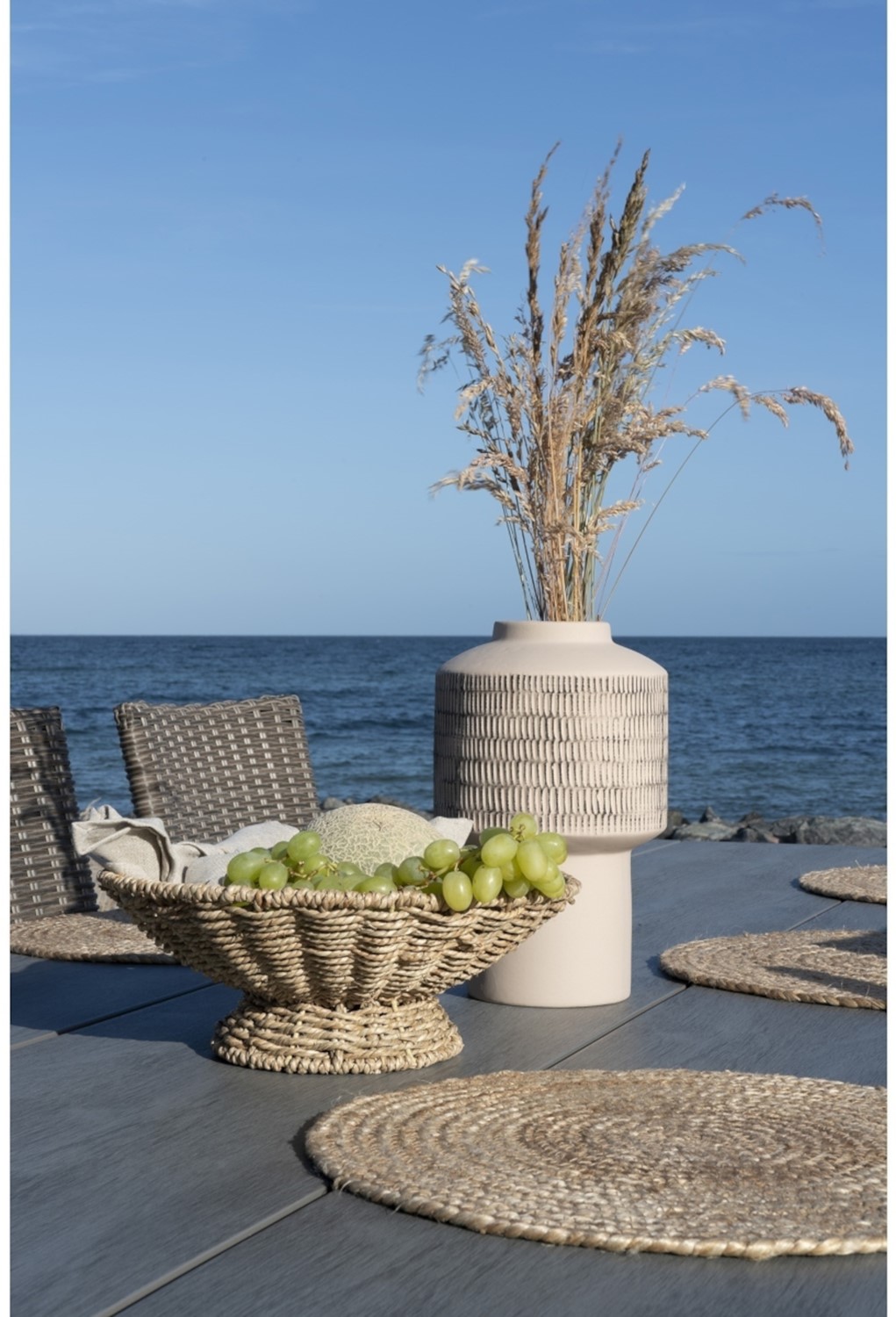 Taca PRUNA pleciona o średnicy 30 cm to wyjątkowy element dekoracyjny, który doda charakteru każdemu wnętrzu. Wykonana z naturalnych materiałów, taca wyróżnia się pięknym, plecionym wzorem, który wprowadza ciepło i przytulność. Jej lekka konstrukcja sprawia, że jest łatwa do przenoszenia i idealna do codziennego użytku.Taca Pruna sprawdzi się jako pojemnik na świeże owoce, warzywa lub jako element dekoracji wnętrza.