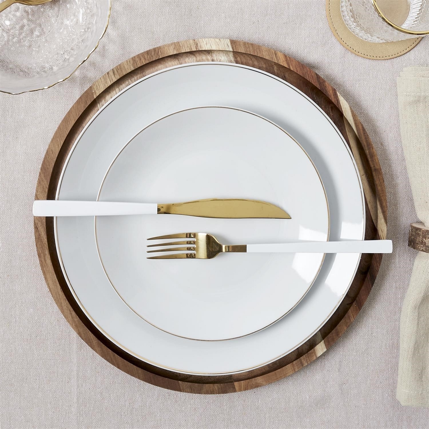 Klasyczna biała porcelana z subtelną złotą obwódką, która wydobywa piękno klasycznego kształtu talerza. Wzbogać nakrycie swojego stołu o elegancje talerzy Pear Gold. Talerze Pearl Gold dostępne są w wersji płaskiej i głębokiej. Główny skład: Porcelana. Talerz nadaje się do mycia w zmywarce. Wymiary opakowania 31,00 x 29,00 x 30,00