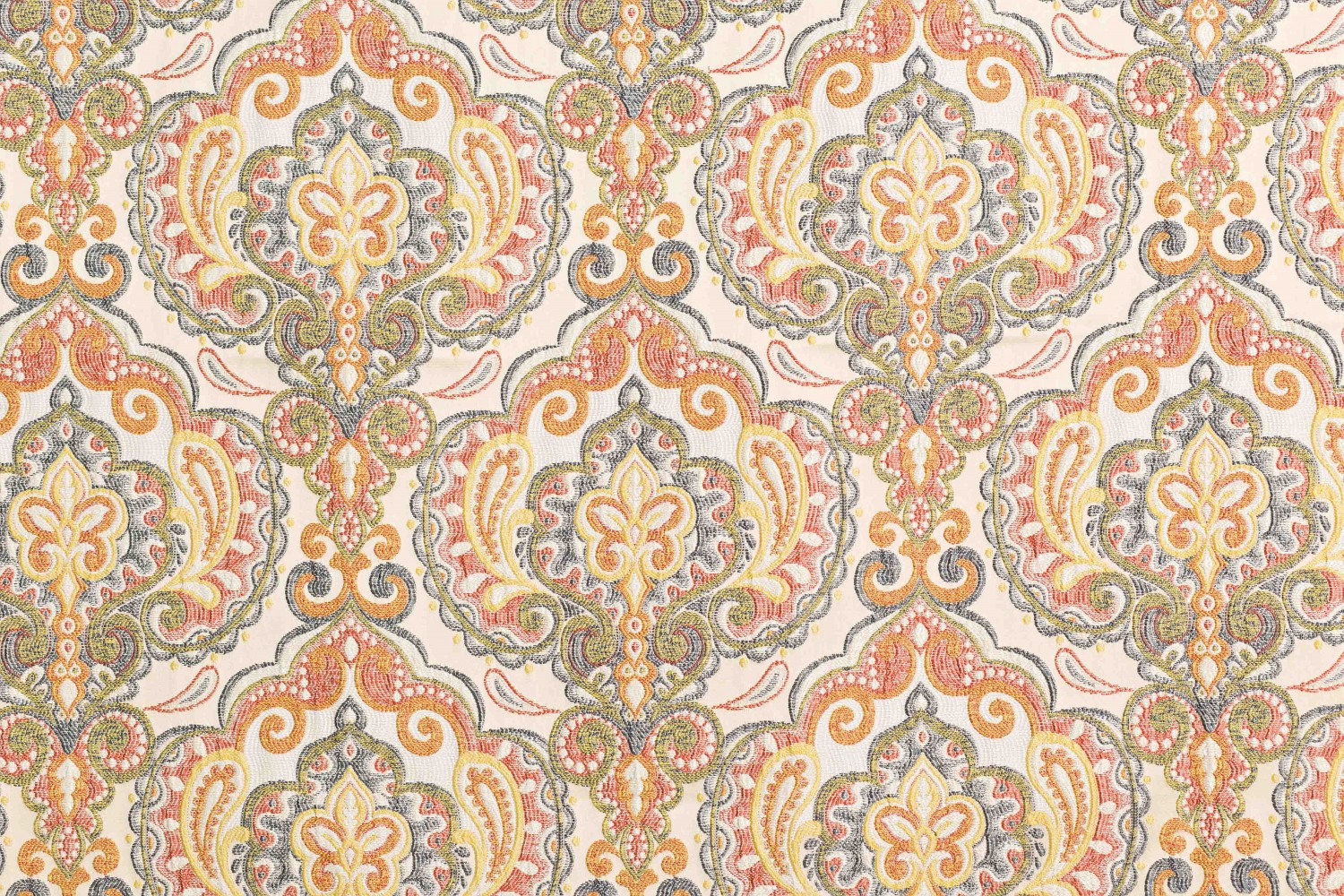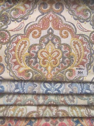 Kolekcja Bombaj, czyli bogato zdobiona tkanina inspirowana indyjskimi wzorami. Idealna do stylizowanych, wyrazistych wnętrz. Orientalne, indyjskie, dekoracyjne i bardzo oryginalne tkaniny.Paleta barw, która została użyta do wykonania tkaniny, rewelacyjnie ociepli twoje wnętrze i doda mu pazura!Ogromnym plusem materiału jest łatwość czyszczenia.