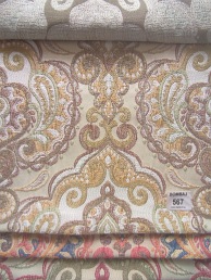 Kolekcja Bombaj, czyli bogato zdobiona tkanina inspirowana indyjskimi wzorami. Idealna do stylizowanych, wyrazistych wnętrz. Orientalne, indyjskie, dekoracyjne i bardzo oryginalne tkaniny.Paleta barw, która została użyta do wykonania tkaniny, rewelacyjnie ociepli twoje wnętrze i doda mu pazura!Ogromnym plusem materiału jest łatwość czyszczenia.
