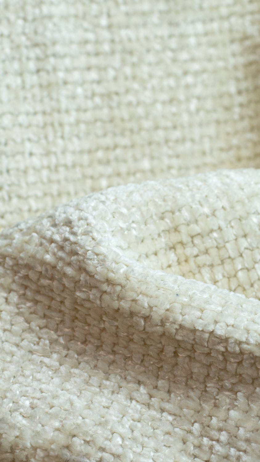 Kolekcja HAGA to wyjątkowa tkanina, w której przędze szenilowe zastosowano zarówno w osnowie, jak i w wątku, co tworzy charakterystycznie gruby i zwarty splot. Jej struktura zachwyca subtelnym efektem melanżu, który dodaje powierzchni głębi i dekoracyjnego uroku. Włókna przędzy szenilowej wykazują wysoki stopień odbicia światła, a ich nierównomierne rozproszenie nadaje tkaninie efekt trójwymiarowości. Mocna, stabilna baza konstrukcyjna zapewnia doskonałą trwałość, czyniąc tę tkaninę idealną do intensywnie użytkowanych mebli. W dotyku HAGA jest niezwykle miękka, obfita i przyjemna, co znacząco podnosi komfort użytkowania. Jej elegancka faktura świetnie wpisuje się w nowoczesne i klasyczne aranżacje.