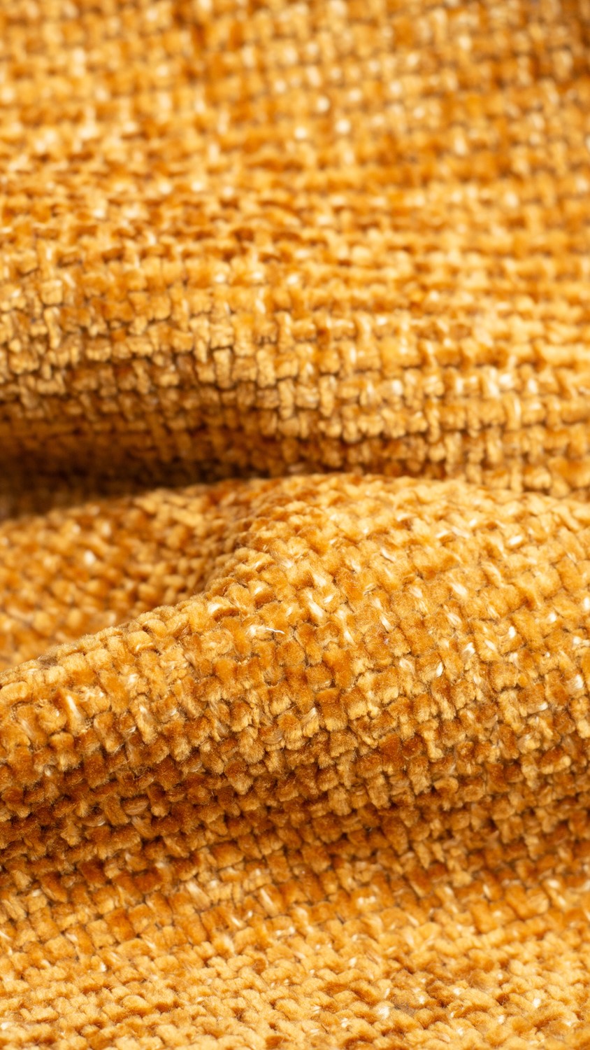 Kolekcja HAGA to wyjątkowa tkanina, w której przędze szenilowe zastosowano zarówno w osnowie, jak i w wątku, co tworzy charakterystycznie gruby i zwarty splot. Jej struktura zachwyca subtelnym efektem melanżu, który dodaje powierzchni głębi i dekoracyjnego uroku. Włókna przędzy szenilowej wykazują wysoki stopień odbicia światła, a ich nierównomierne rozproszenie nadaje tkaninie efekt trójwymiarowości. Mocna, stabilna baza konstrukcyjna zapewnia doskonałą trwałość, czyniąc tę tkaninę idealną do intensywnie użytkowanych mebli. W dotyku HAGA jest niezwykle miękka, obfita i przyjemna, co znacząco podnosi komfort użytkowania. Jej elegancka faktura świetnie wpisuje się w nowoczesne i klasyczne aranżacje.