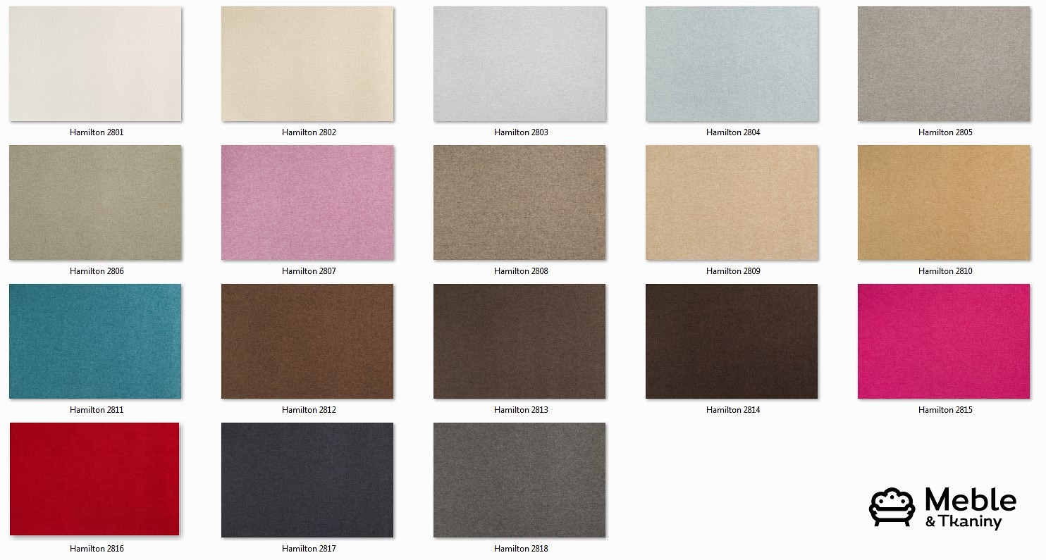 Tkaniny obiciowe z kolekcji Hamilton to tkaniny gładkie z kategorii tkanin velwetowych. Niezwykle przyjemna i delikatna w dotyku. Tkanina wyprodukowana w technologii CLEANBOO ograniczającej wchłanianie cieczy W przypadku rozlanego napoju, krople gromadzą się na powierzchni tkaniny. Zabrudzone miejsce wystarczy przetrzećściereczką, a najtrudniejsza do usunięcia plama zniknie bez śladu. Prezentowany materiał idealnie sprawdza się na meblach tapicerowanych, narzutach, kocach, zasłonach a także na poduszkach. Idealnie pasują do wnętrz w skandynawskim stylu.