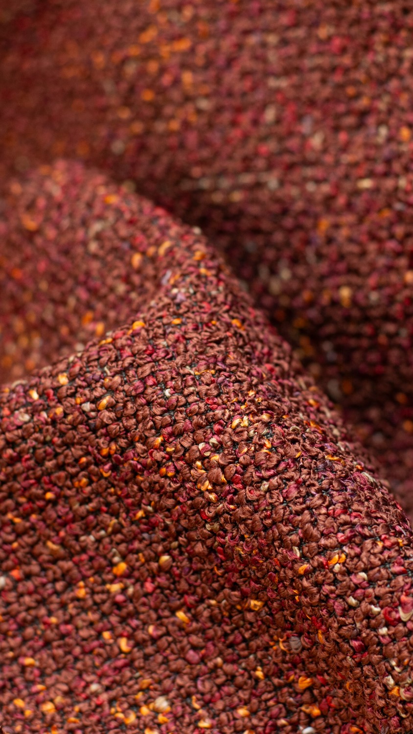 Kolekcja HEVRE to innowacyjna tkanina obiciowa, w której zastosowano nowoczesne rozwiązania oparte na połączeniu dwóch rodzajów nici. Cienkie, delikatne włókna tworzą gęsty i stabilny splot, zapewniający solidną bazę konstrukcyjną materiału. Grubsze przędze nadają tkaninie wyrazisty i dekoracyjny charakter, tworząc charakterystyczną strukturę typu boucle. Efekt ten został osiągnięty dzięki zastosowaniu puszystego multifilamentu oplecionego cieńszą nitką, co daje ciekawy wizualnie melanż i miękki chwyt. Dzięki zwartej konstrukcji HEVRE nie wymaga stosowania dodatkowych warstw kleju wzmacniającego, co świadczy o wysokiej stabilności przędzy. Tkanina charakteryzuje się wysoką wytrzymałością oraz bardzo dobrą odpornością na światło i tarcie.