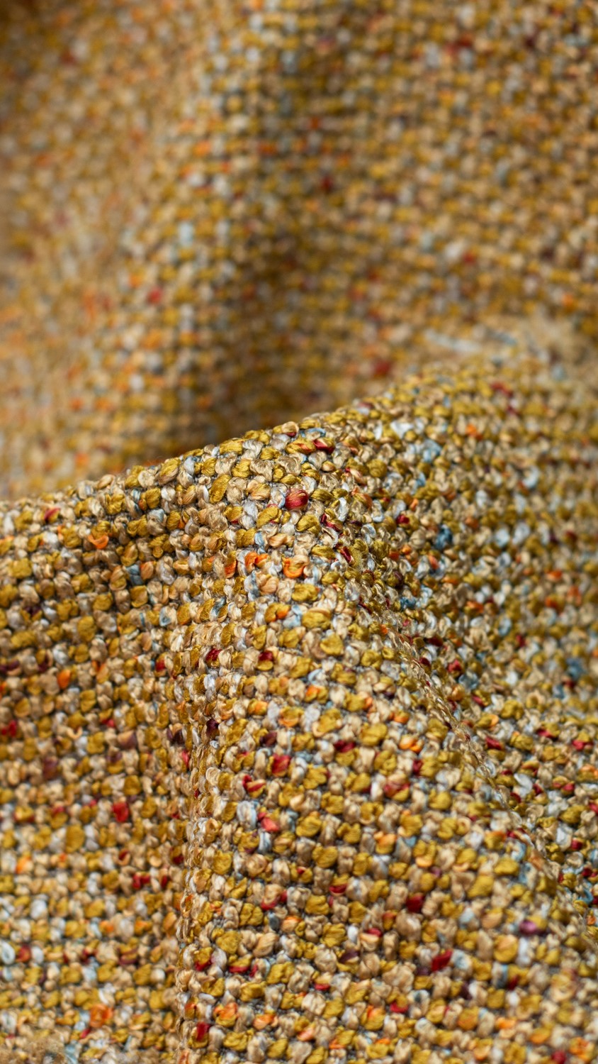 Kolekcja HEVRE to innowacyjna tkanina obiciowa, w której zastosowano nowoczesne rozwiązania oparte na połączeniu dwóch rodzajów nici. Cienkie, delikatne włókna tworzą gęsty i stabilny splot, zapewniający solidną bazę konstrukcyjną materiału. Grubsze przędze nadają tkaninie wyrazisty i dekoracyjny charakter, tworząc charakterystyczną strukturę typu boucle. Efekt ten został osiągnięty dzięki zastosowaniu puszystego multifilamentu oplecionego cieńszą nitką, co daje ciekawy wizualnie melanż i miękki chwyt. Dzięki zwartej konstrukcji HEVRE nie wymaga stosowania dodatkowych warstw kleju wzmacniającego, co świadczy o wysokiej stabilności przędzy. Tkanina charakteryzuje się wysoką wytrzymałością oraz bardzo dobrą odpornością na światło i tarcie.