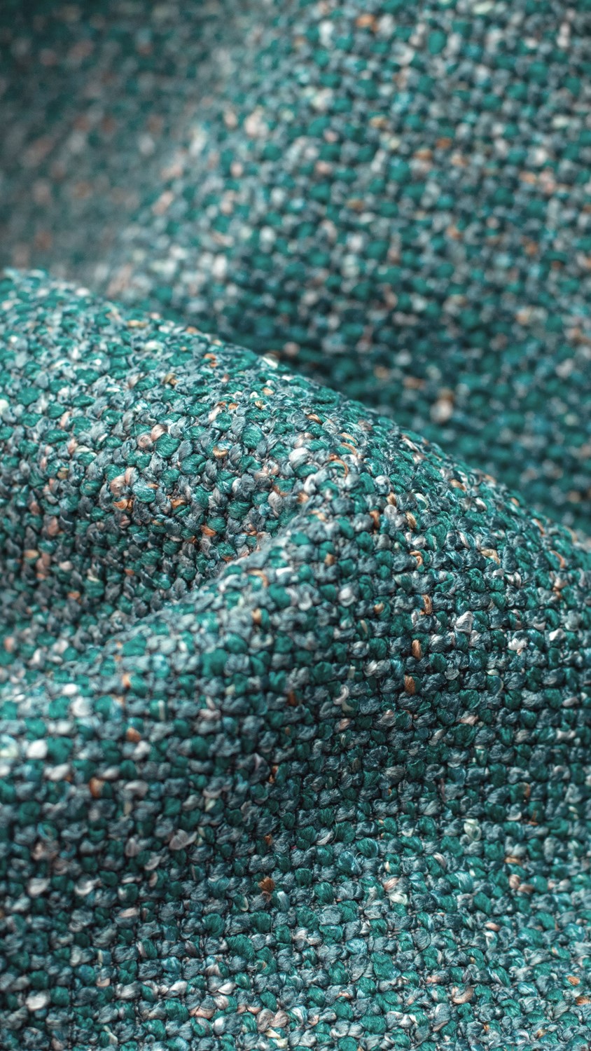 Kolekcja HEVRE to innowacyjna tkanina obiciowa, w której zastosowano nowoczesne rozwiązania oparte na połączeniu dwóch rodzajów nici. Cienkie, delikatne włókna tworzą gęsty i stabilny splot, zapewniający solidną bazę konstrukcyjną materiału. Grubsze przędze nadają tkaninie wyrazisty i dekoracyjny charakter, tworząc charakterystyczną strukturę typu boucle. Efekt ten został osiągnięty dzięki zastosowaniu puszystego multifilamentu oplecionego cieńszą nitką, co daje ciekawy wizualnie melanż i miękki chwyt. Dzięki zwartej konstrukcji HEVRE nie wymaga stosowania dodatkowych warstw kleju wzmacniającego, co świadczy o wysokiej stabilności przędzy. Tkanina charakteryzuje się wysoką wytrzymałością oraz bardzo dobrą odpornością na światło i tarcie.
