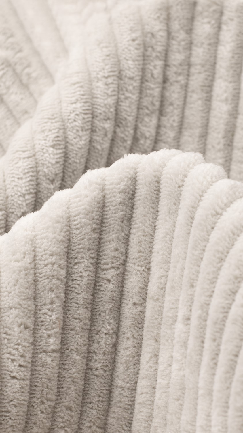 Kolekcja Hydra to dzianina osnowowa o kolumnowej strukturze, która zapewnia elastyczność i bardzo dobre dopasowanie do mebla. Materiał rozciąga się głównie na szerokość, co ułatwia precyzyjne tapicerowanie. Jego powierzchnia jest miękka w dotyku dzięki wykorzystaniu postrzępionych końcówek ciętych nici na wierzchniej warstwie. Szerokie pasy nadają tkaninie wyróżniający się, nowoczesny wygląd. Dzięki dwóm układom nitek – bazowych i pokryciowych łączy wysoką odporność mechaniczną z miękkością użytkową. Wykonana w 100% z poliestru, zachowuje stabilność parametrów i trwałość podczas codziennego użytkowania.
