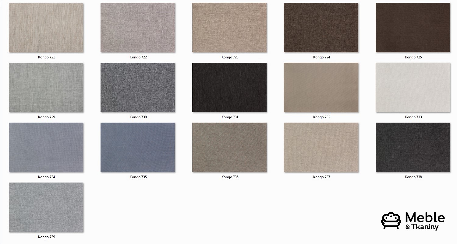 Kongo to dość sztywna, choć nie gruba tkanina wykonana ze splotu jaśniejszych i ciemniejszych odcieni nici. Nabyć ją możemy w 16 ziemistych odcieniach, doskonałych jako obicie ozdobnej poduszki salonowej. Doskonale sprawdzi się w orientalnych wnętrzach np. w stylu marokańskim. Tkanina ta posiada naturalne właściwości antybakteryjne za sprawą przędzy olefinowej. Oznaczono ją także certyfikatem OEKO-TEX Standard 100, czyli najbardziej rozpoznawalnym na świecie symbolem bezpieczeństwa wyrobów włókienniczych. Tkaniny takie są wolne od substancji szkodliwych takich jak pestycydy, chlorofenole, barwniki alergizujących czy metale ciężkie.
