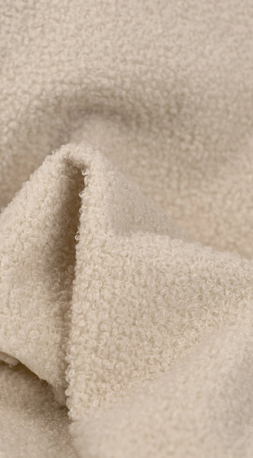 Kolekcja LARRY to dzianina osnowowa o charakterystycznej, nierównomiernej fakturze tworzonej przez skręcone włókna okrywy. Efekt ten uzyskuje się dzięki procesowi tamblowania, czyli mechanicznemu gnieceniu materiału z udziałem podwyższonej temperatury i pary. Tkanina nie posiada pętelek jak bouclé, lecz estetycznie skręcone włókna, które nadają jej nowoczesną, miękką i wizualnie bogatą strukturę. Materiał składa się z dwóch warstw — elastycznej i wytrzymałej dzianiny bazowej oraz delikatnych włókien imitujących naturalne włosie. Od spodu dodatkowo wzmocniono go gęsto tkaną warstwą, co zwiększa stabilność oraz trwałość. Dzianina LARRY jest miękka, odporna na zużycie, a jednocześnie bardzo funkcjonalna. Odporność na ścieranie oraz wysoka odporność na tarcie potwierdzają jej przydatność w intensywnie użytkowanych wnętrzach. Dodatkowym atutem jest wysoka odporność na zwierzęce pazury, co czyni ją doskonałą dla domów z pupilami.