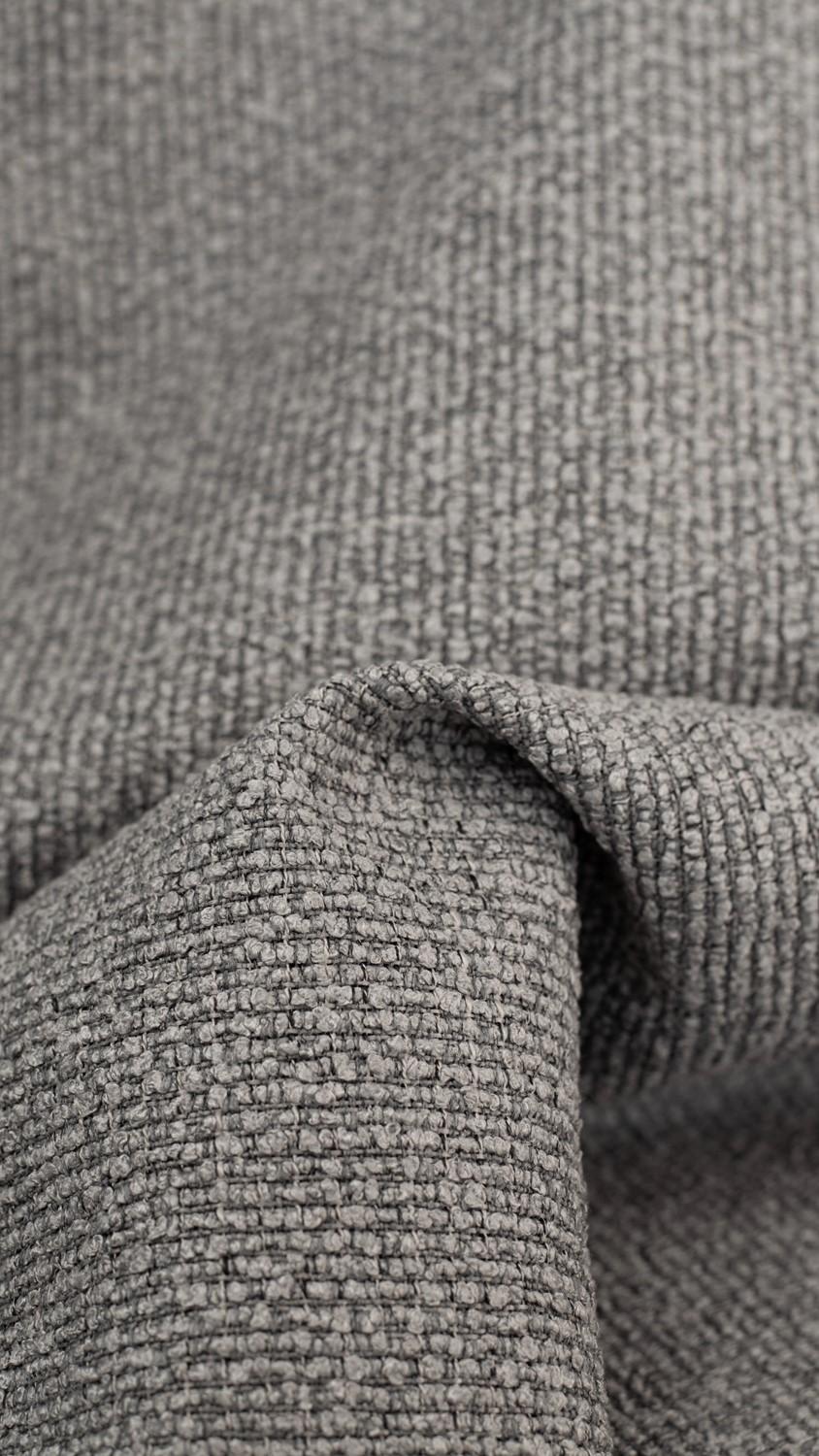 Kolekcja PIXIE to strukturalna tkanina o subtelnym reliefie, który tworzą charakterystyczne wypukłości i wklęsłości nadające jej delikatny efekt 3D. Wyrazista faktura powstaje dzięki zastosowaniu przędz o różnej grubości oraz dopracowanemu splotowi tkackiemu. Widoczne zarysy wątku i osnowy podkreślają dekoracyjny charakter materiału, a jednocześnie czynią go bardziej interesującym wizualnie. Przędze pętelkowe we wątku nadają tkaninie wygląd i miękkość charakterystyczną dla bouclé, co dodaje jej przytulności. Od spodu została ona wzmocniona laminacją z włókniną poliestrową, dzięki czemu zyskuje odpowiednią masę i stabilność. PIXIE jest nie tylko dekoracyjna, ale również wytrzymała i odporna na codzienne użytkowanie.