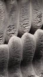 Kolekcja VELO to dzianina osnowowa o charakterystycznej, kolumienkowej strukturze i wyrazistych, szerokich prążkach. Dzięki lekkiej elastyczności, szczególnie wszerz, materiał doskonale dopasowuje się do kształtu mebla, zapewniając komfort oraz estetyczne napięcie powierzchni. Wierzchnia warstwa powstaje z przeciętych i rozwłóknionych nitek, co nadaje jej przyjemną miękkość oraz subtelny efekt puszystości. Wyróżnia się także znakomitą odpornością na tarcie oraz doskonałą odpornością koloru na światło sztuczne. To dzianina, która łączy funkcjonalność, trwałość i nowoczesny wygląd inspirowany strukturami futerkowych i przestrzennych tekstyliów.