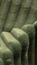 Kolekcja VELO to dzianina osnowowa o charakterystycznej, kolumienkowej strukturze i wyrazistych, szerokich prążkach. Dzięki lekkiej elastyczności, szczególnie wszerz, materiał doskonale dopasowuje się do kształtu mebla, zapewniając komfort oraz estetyczne napięcie powierzchni. Wierzchnia warstwa powstaje z przeciętych i rozwłóknionych nitek, co nadaje jej przyjemną miękkość oraz subtelny efekt puszystości. Wyróżnia się także znakomitą odpornością na tarcie oraz doskonałą odpornością koloru na światło sztuczne. To dzianina, która łączy funkcjonalność, trwałość i nowoczesny wygląd inspirowany strukturami futerkowych i przestrzennych tekstyliów.