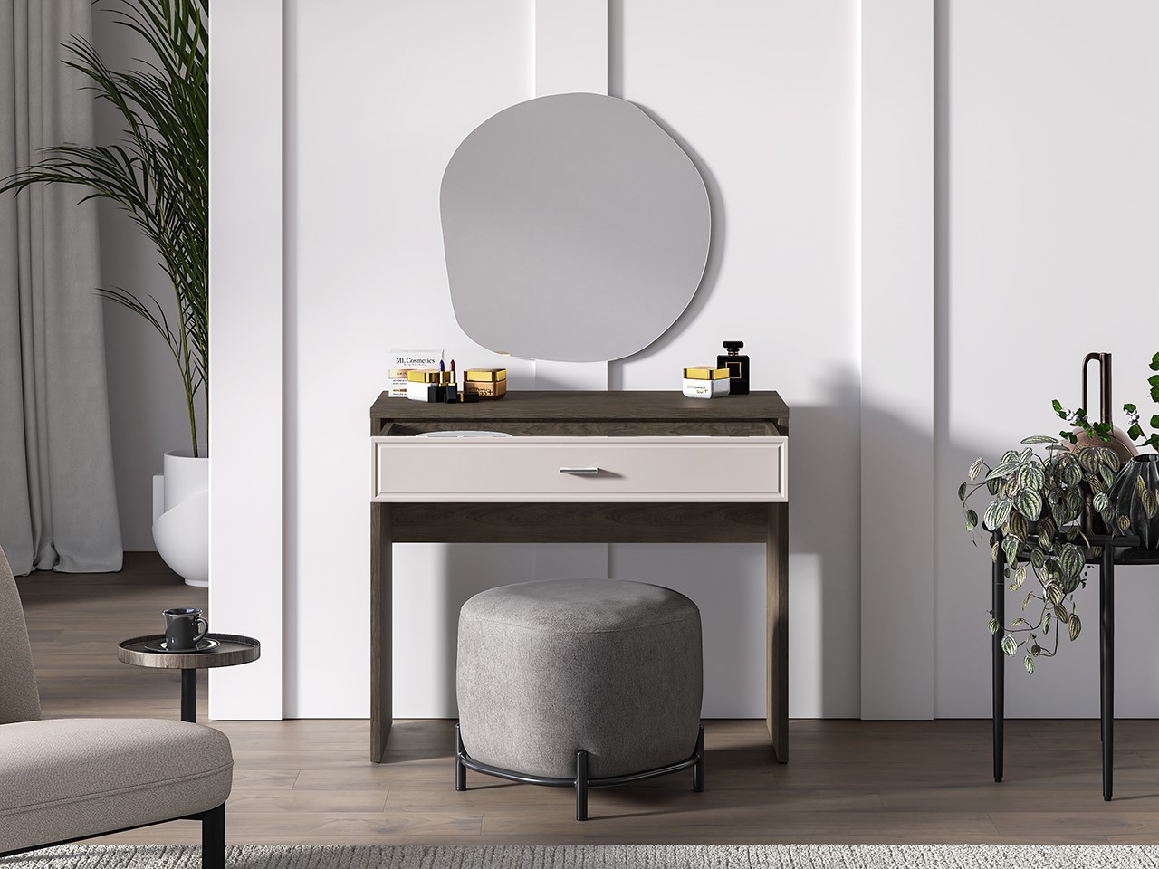 Toaletka z serii TOSCANIA to elegancki mebel, który świetnie sprawdzi się w sypialni lub garderobie. Niewielkie rozmiary, praktyczne szufladki i klasyczne wykończenie czynią z niej idealne miejsce do przechowywania kosmetyków i biżuterii. Stylowy blat może również służyć jako przestrzeń do pracy lub dekoracyjna konsola.
