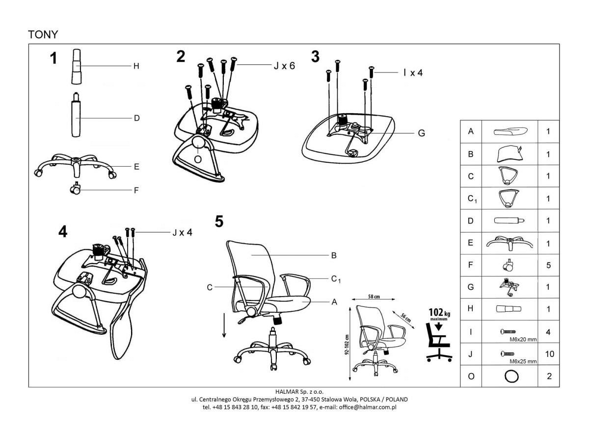 Najważniejszą cechą foteli biurowych jest ich wygoda i ergonomia. Jeśli dodamy do tego niebanalny wygląd, zdaje się, że otrzymujemy produkt idealny. Taki jest fotel Tony. Siatka oraz tkanina membranowa sprawiają, że fotel jest nieparzący, a szerokie siedzisko i lekko odchylone oparcie, że każdemu będzie na nim wygodnie. Czy można chcieć więcej? Można, dlatego w fotelu Tony zamontowano mechanizm TILT zapewniający płynna regulację wysokości, swobodne kołysanie się, obracanie oraz blokadę oparcia podczas użytkowania go w pozycji pionowej. Do podstawy krzesła zamocowany został zestaw kółek przeznaczony do dywanów. W razie potrzeby oferujemy również kółka kauczukowe zaprojektowane specjalnie do powierzchni twardych np. paneli.
