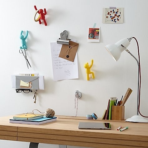 BUDDY to wieszak który wyszedł spod ręki projektanta Toma Vincenta. Każdy z elementów przypomina wspinające się postacie. Zestaw zawiera trzy elementy o wymiarach 7,5 x 16,8 x 7,6 cm. Elementy w kolorze: czerwony, niebieski, żółty. Wieszak znajdzie również swoje zastosowanie jako element dekoracyjny. Udźwig jednego elementu 2.3kg Waga netto 1 szt.: 0.50 kg Waga opakowania: 1 kg Maksymalna ilość szt. w opakowaniu: 3 Sposób wysyłki: Paczka Produkt do samodzielnego montażu: Nie