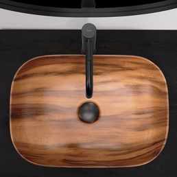 Prostokątne umywalki nablatowe: Nowoczesne i minimalistyczne, doskonale komponują się z prostymi, geometrycznymi kształtami w łazience.