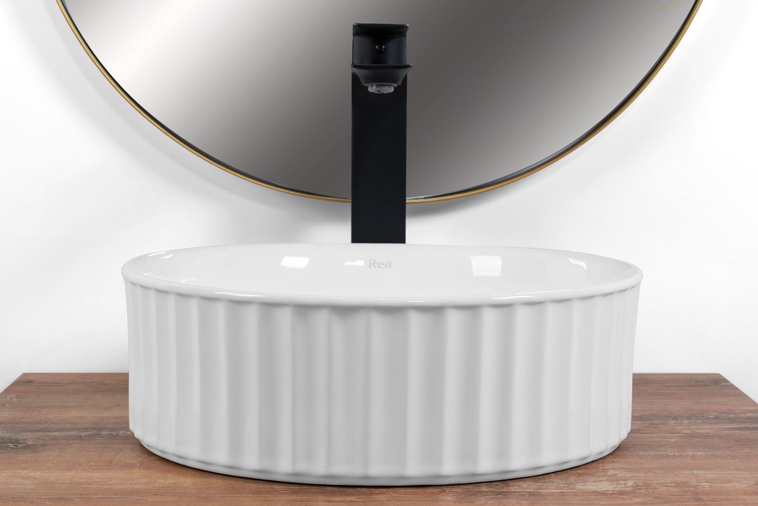 Umywalka nablatowa to doskonałe rozwiązanie dla osób, które chcą nadać swojej łazience nowoczesny i elegancki wygląd, jednocześnie dbając o funkcjonalność i wygodę użytkowania. Wykonana z wysokiej jakości ceramiki sanitarnej, umywalka ta gwarantuje długotrwałe użytkowanie i łatwość utrzymania w czystości. Jej minimalistyczny design sprawia, że pasuje do różnych stylów aranżacji, od nowoczesnych po klasyczne. Montaż nablatowy umywalki jest prosty i szybki, co pozwala na łatwą instalację w każdej łazience. Dodatkowo umywalka doskonale komponuje się z różnymi rodzajami blatów.