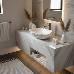 Umywalka ISLA to nowoczesny model o dekoracyjnym charakterze, który doskonale sprawdzi się w nowoczesnych i designerskich aranżacjach łazienek. Nablatowa forma nadaje wnętrzu prestiżu i nowoczesności, a wyrazista bryła tworzy efektowny punkt centralny strefy umywalkowej. ISLA łączy funkcjonalność z estetyką, oferując komfort użytkowania oraz trwałość na lata.