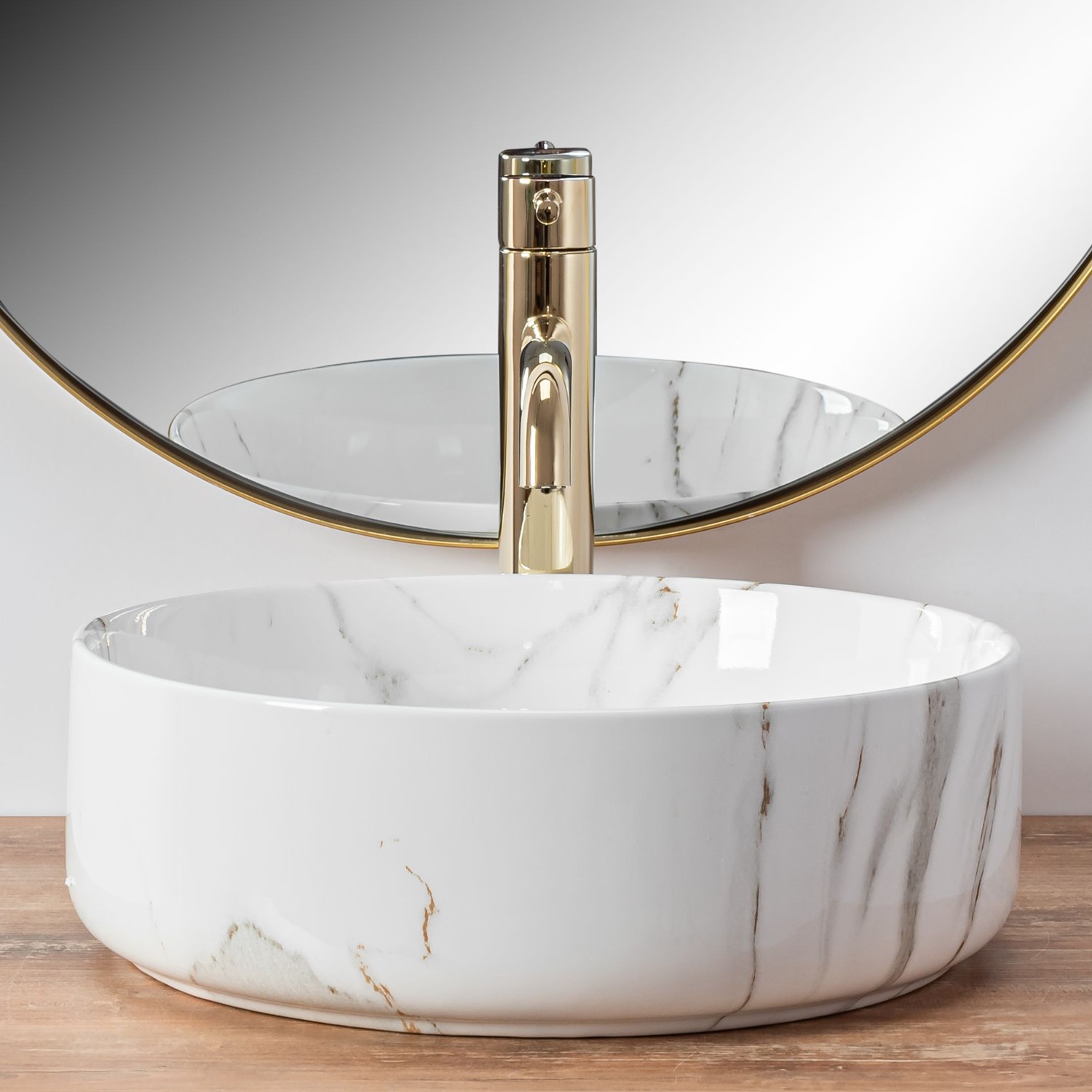 Okrągłe umywalki nablatowe: Klasyczne i eleganckie, idealne do łazienek w stylu retro lub nowoczesnym.