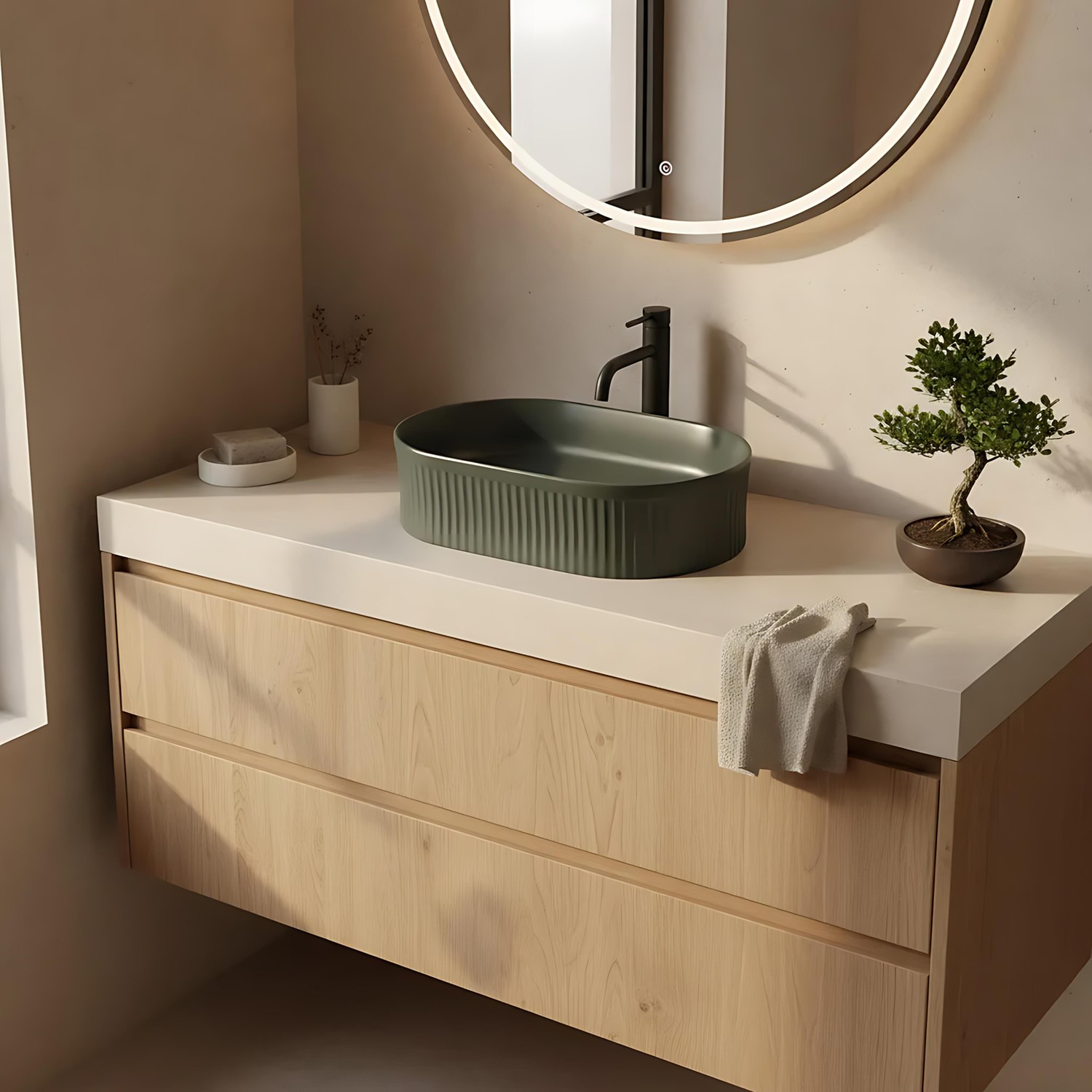 Umywalka nablatowa to elegancka i funkcjonalna opcja do każdej łazienki. Charakteryzuje się nowoczesnym wyglądem i prostym, ale stylowym designem, który pasuje do różnych aranżacji wnętrz. Wykonana z trwałych materiałów, zapewnia długotrwałą funkcjonalność oraz łatwość w utrzymaniu czystości. Ergonomiczny kształt gwarantuje komfort korzystania z umywalki. Umywalka nablatowa doskonale współgra z wysokimi bateriami lub bateriami ściennymi. To idealny wybór dla osób ceniących estetykę, funkcjonalność i nowoczesne rozwiązania.
